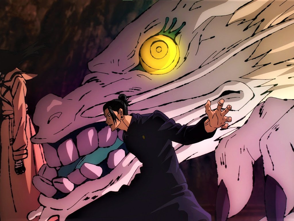 Jujutsu Kaisen, Suguru Geto, Dragon, Glowing Eyes, Bun Full HD Wallpaper Background with a maximum resolution of 1920x1080 px.