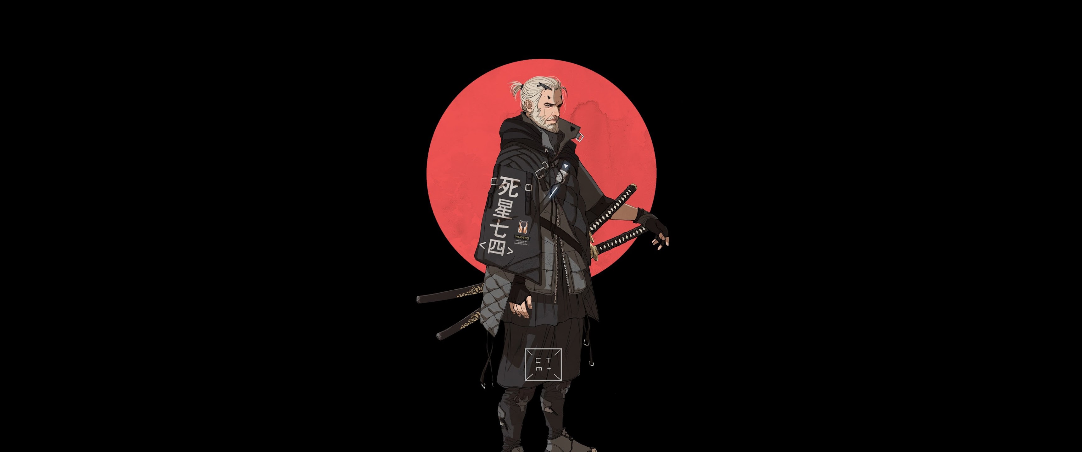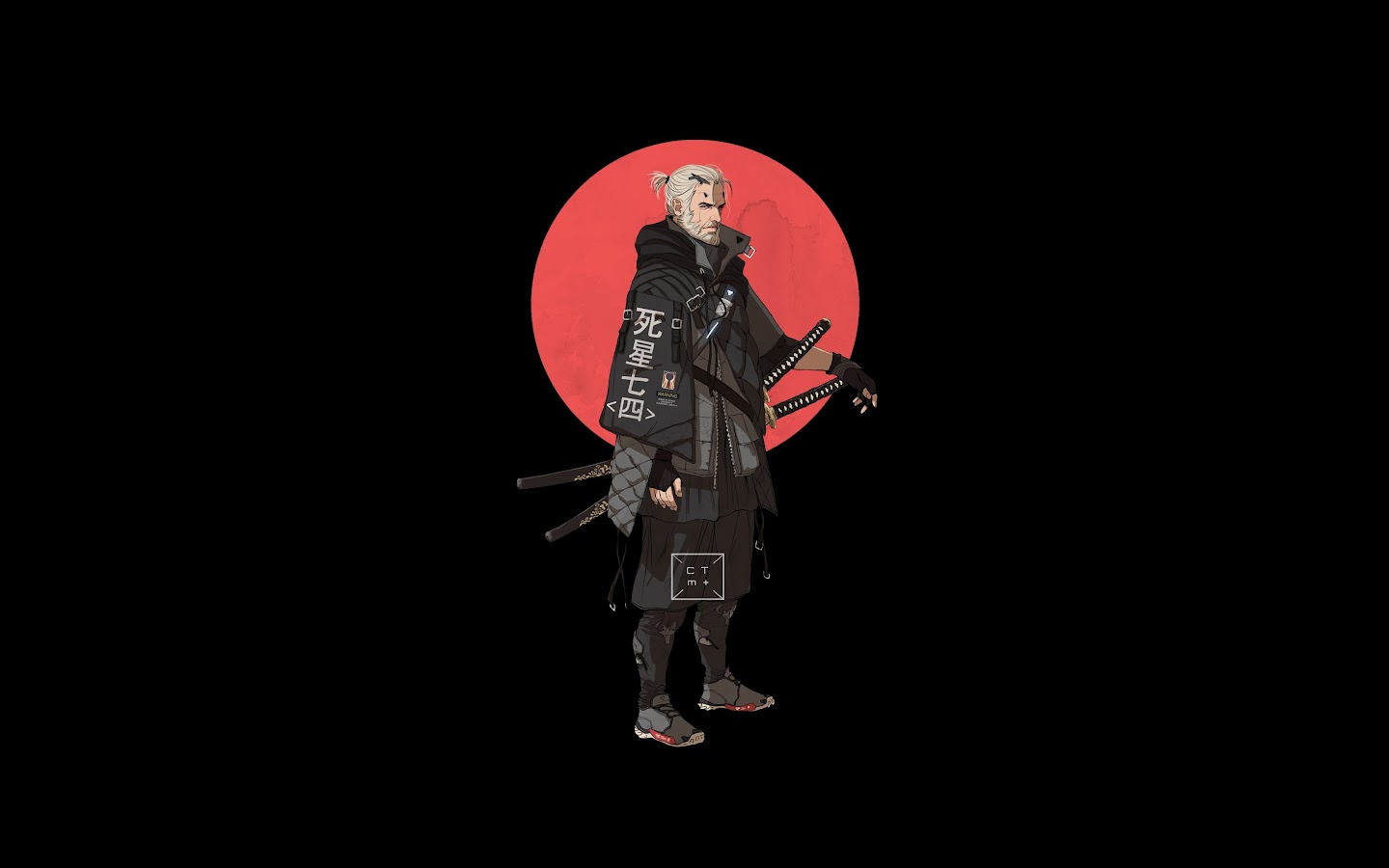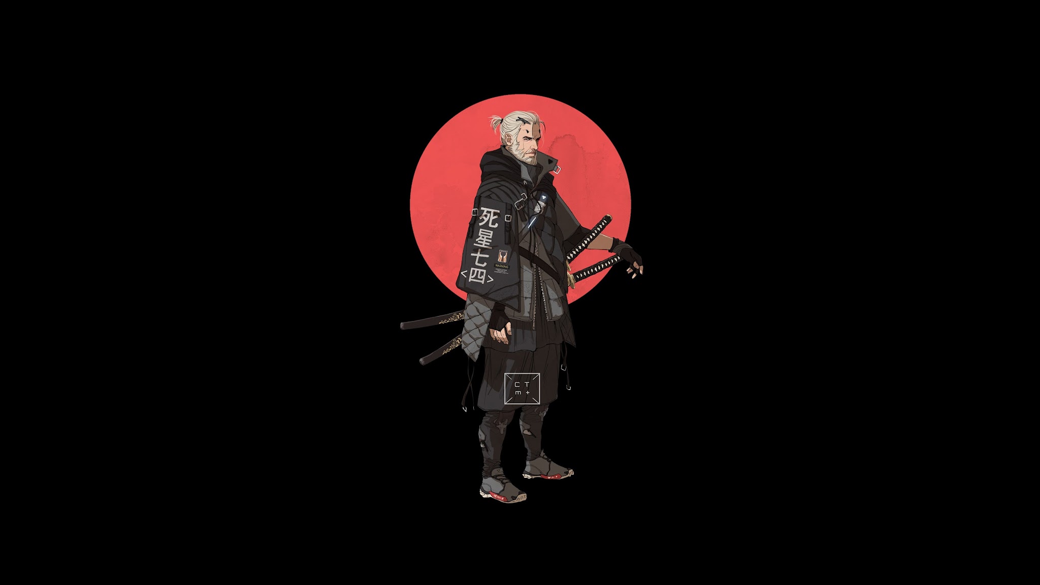 Katana, Geralt Of Rivia, Black Background, Minimalism, Simple Background 4K Wallpaper Background with a maximum resolution of 3840x2160 px.
