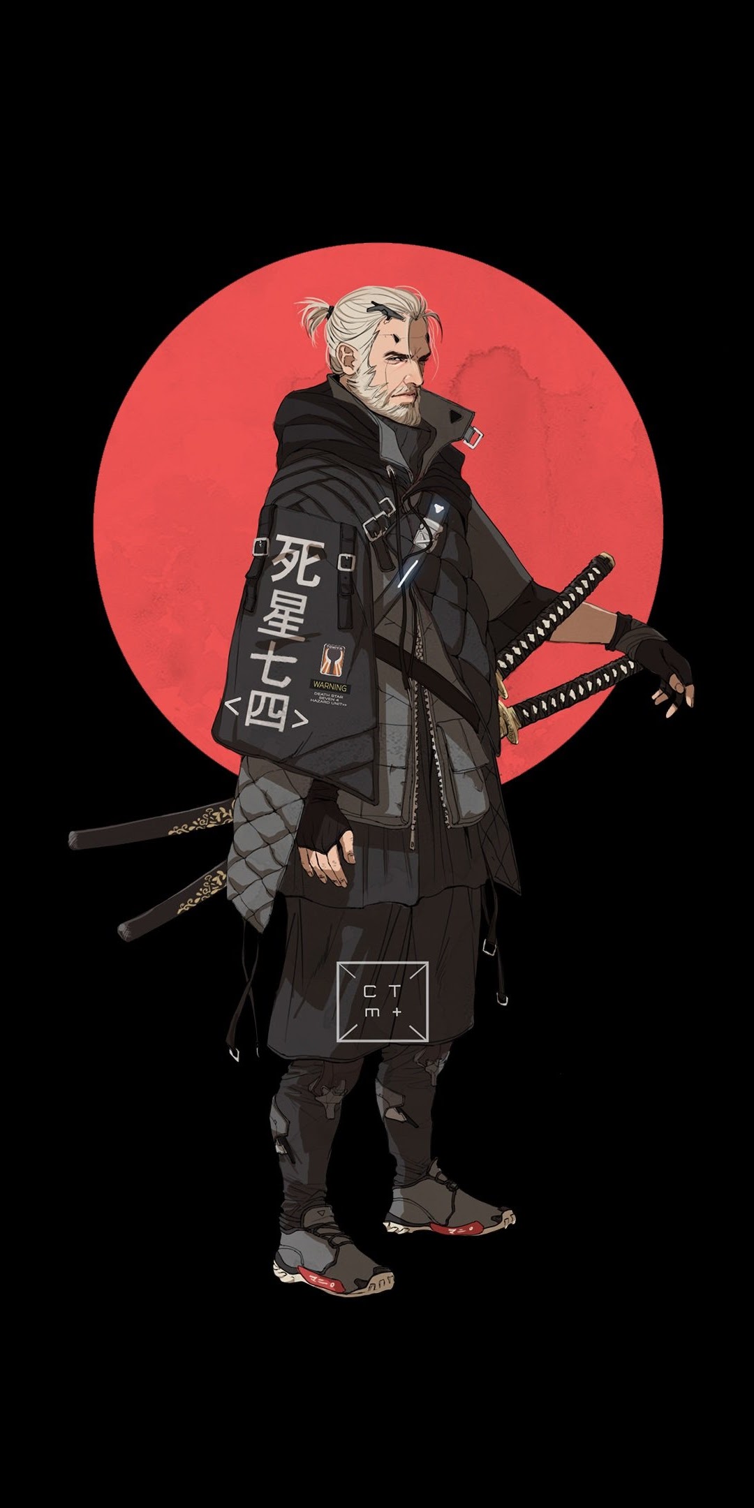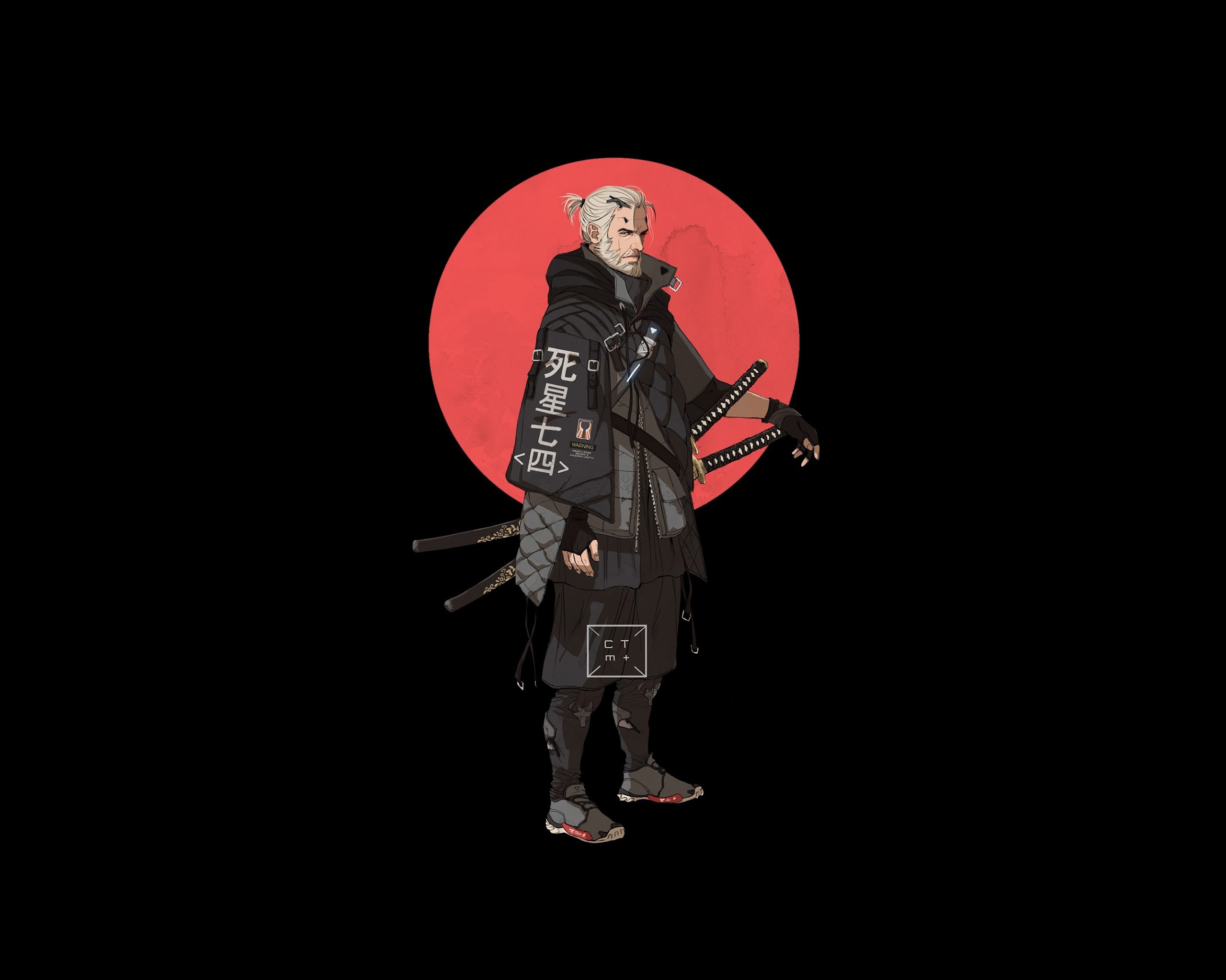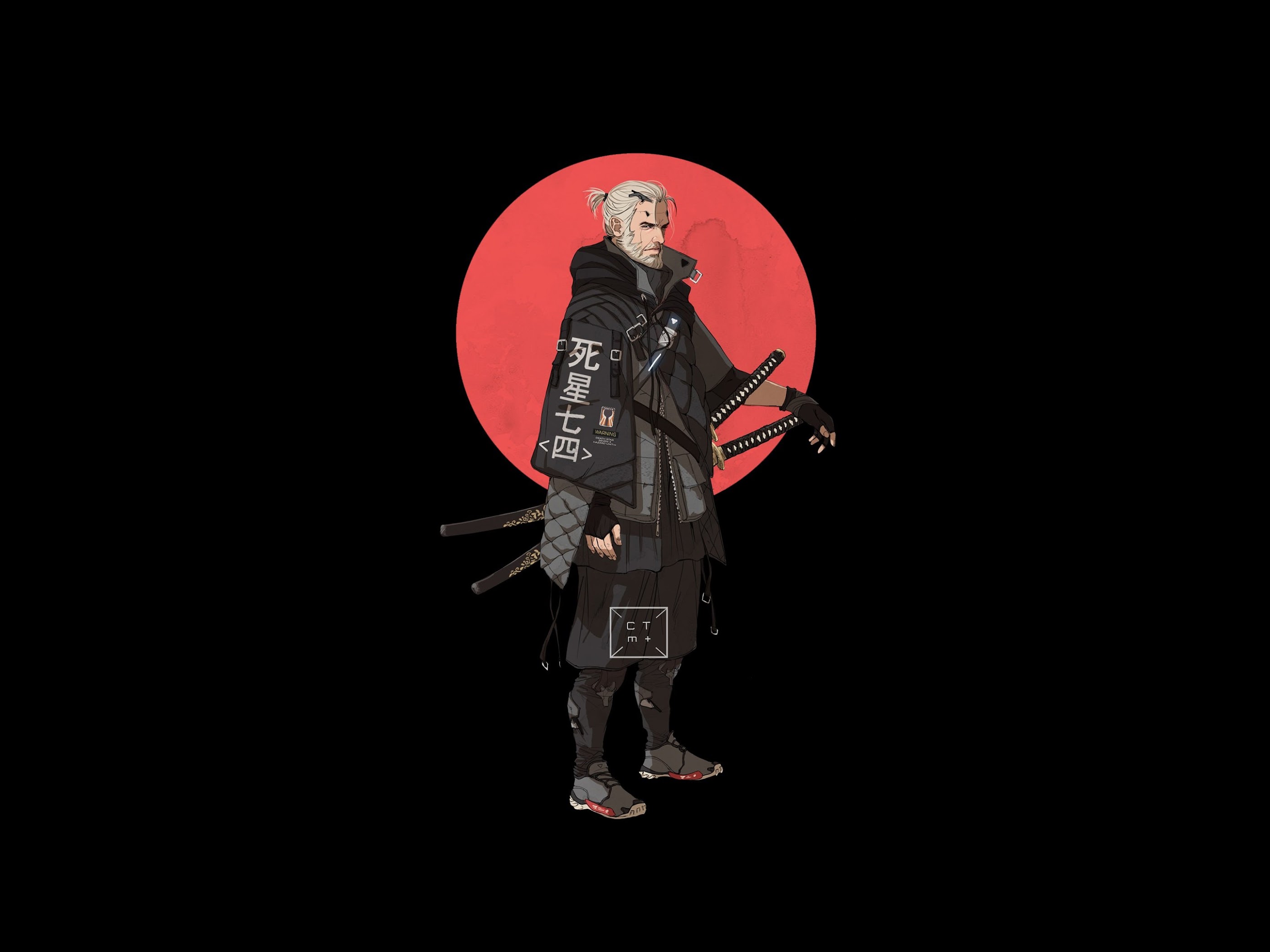 Katana, Geralt Of Rivia, Black Background, Minimalism, Simple Background 4K Wallpaper Background with a maximum resolution of 3840x2160 px.