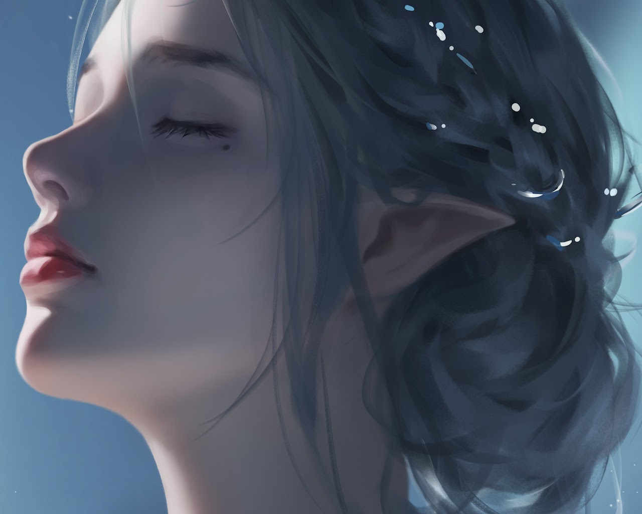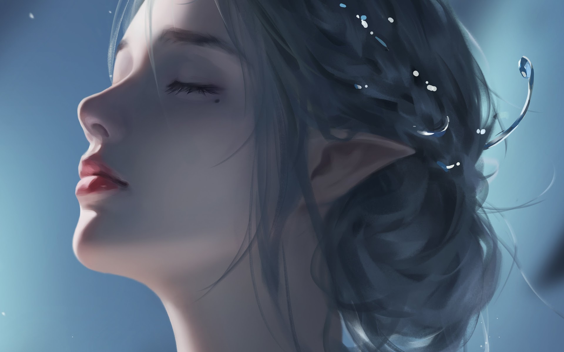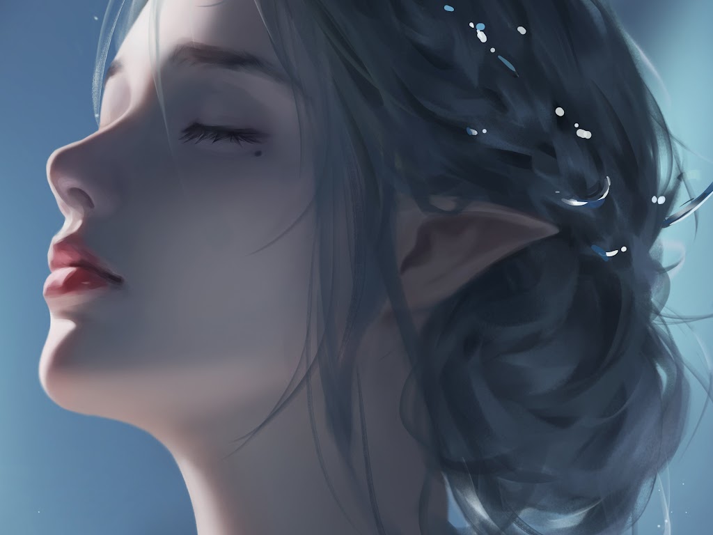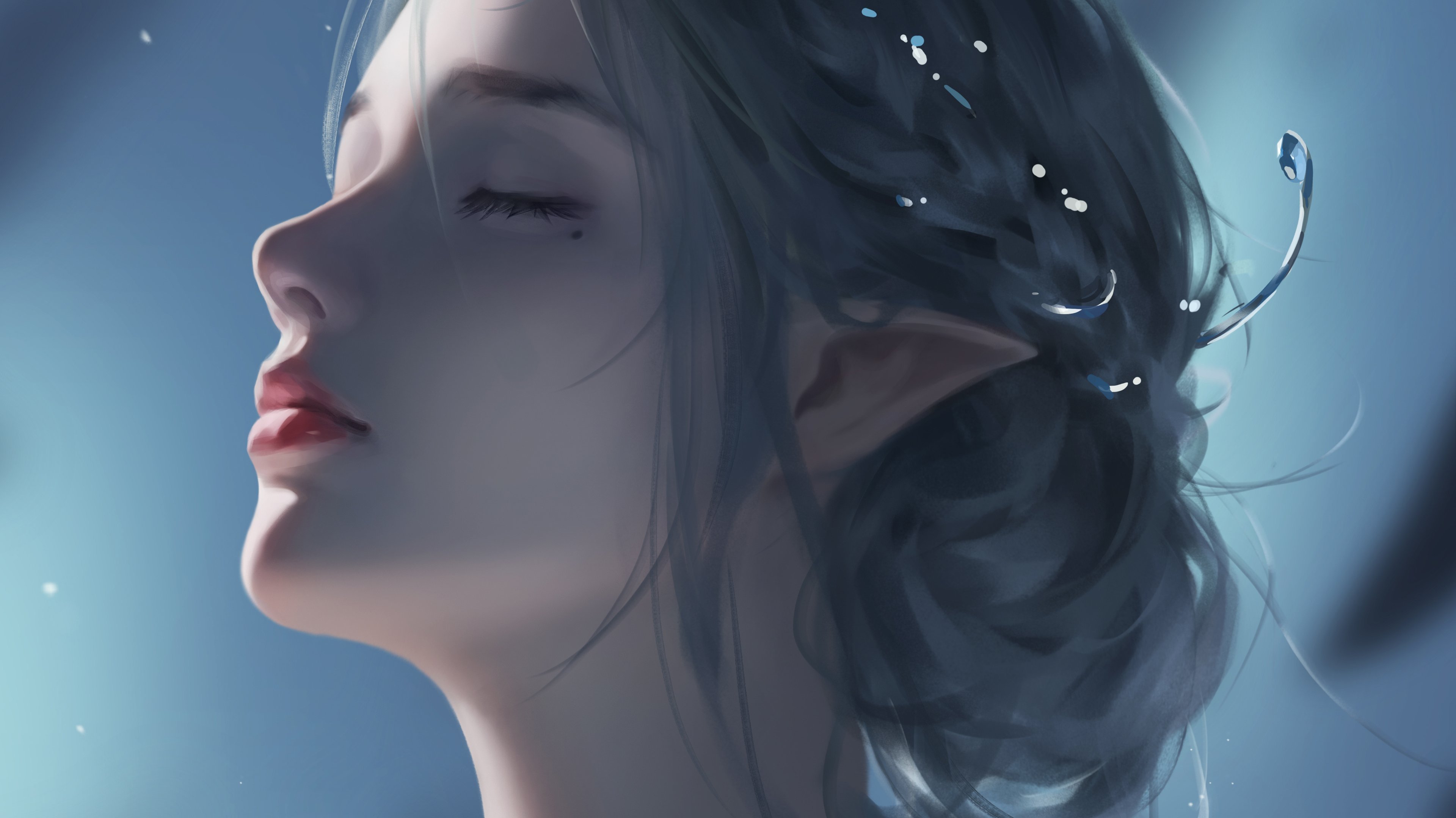 Long Hair, Women, Pointy Ears, Closed Eyes, Moles 4K Wallpaper Background with a maximum resolution of 3840x2160 px.