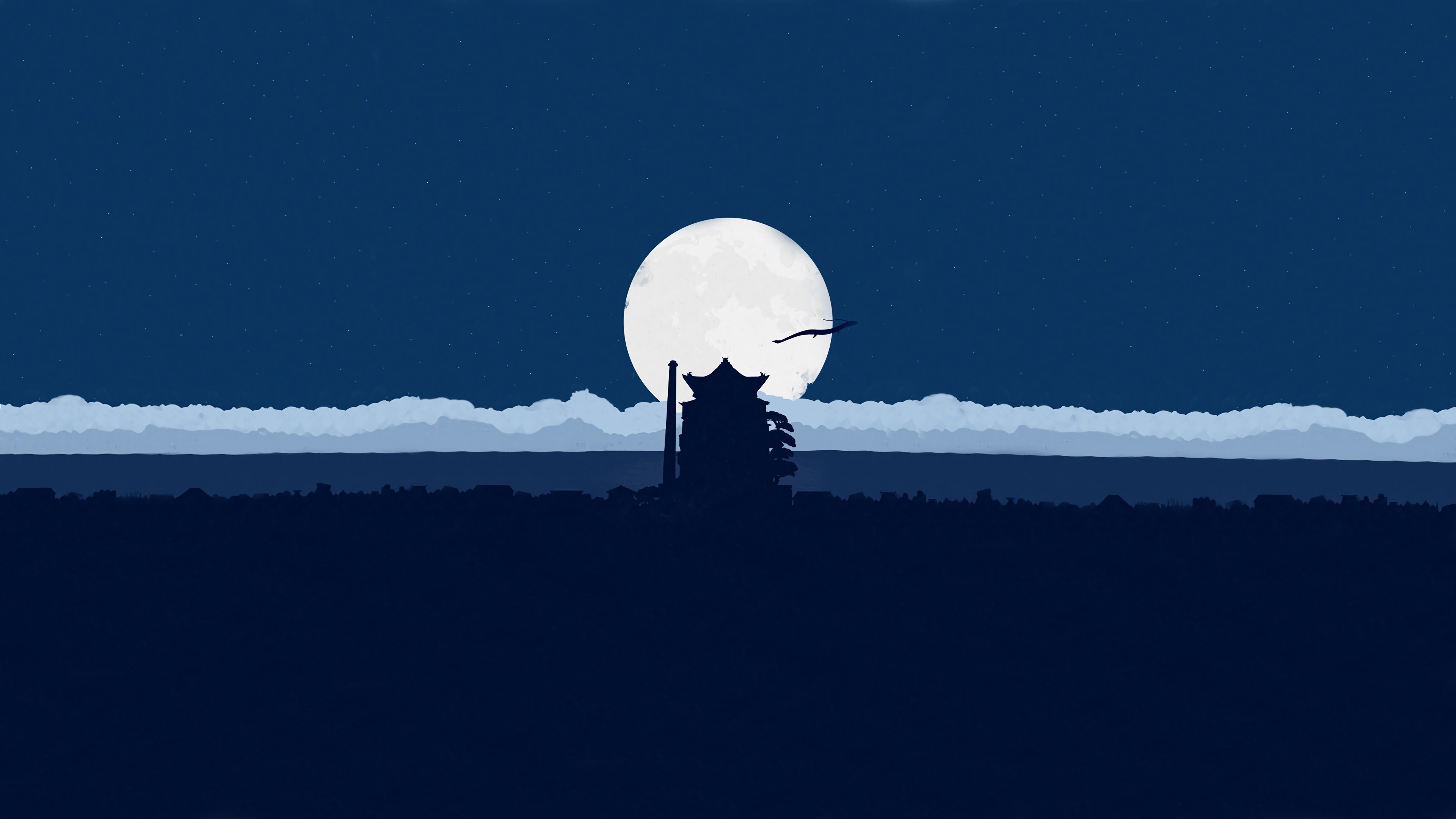 Minimalism, Blue, Clear Sky, Spirited Away, Sen To Chihiro 4K Wallpaper Background with a maximum resolution of 3840x2160 px.