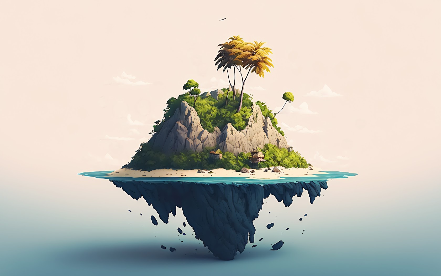 Minimalism, Island, Digital Art 4K PC Wallpaper