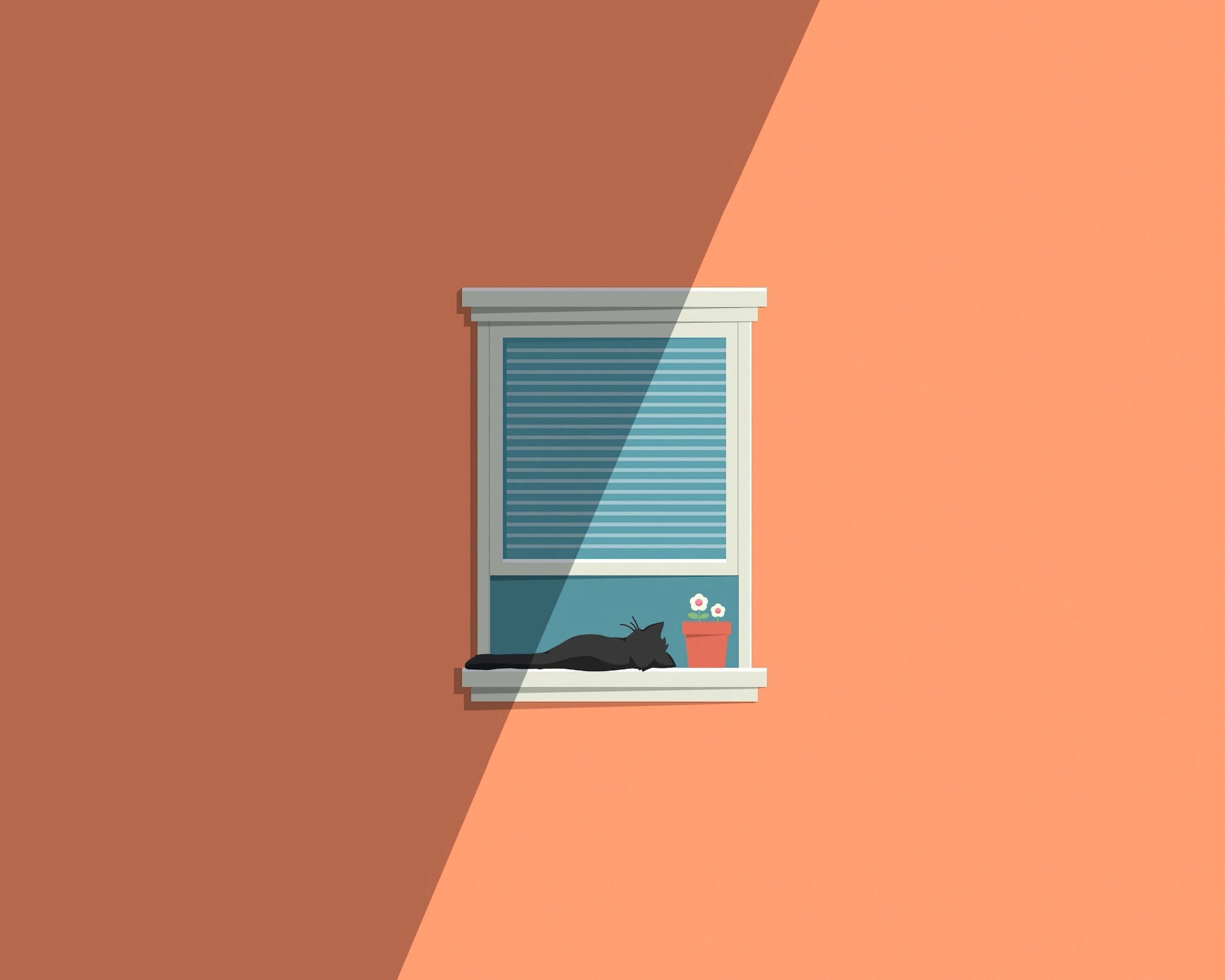 Minimalism, Simple Background, Cats, Window Sill 4K Wallpaper Background with a maximum resolution of 3840x2160 px.