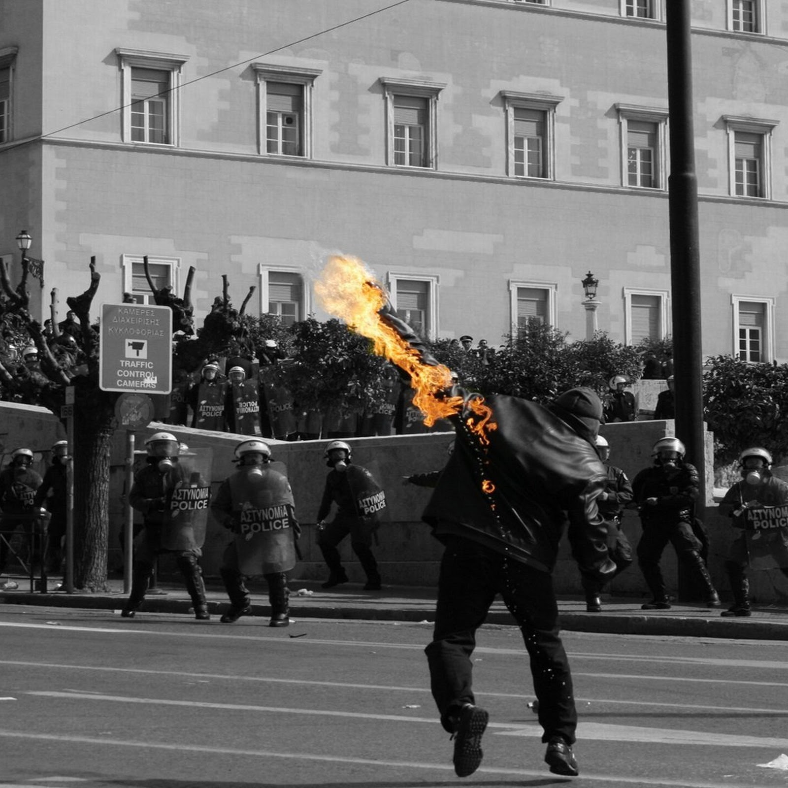 Molotov, Selective Coloring, People, City, Riots, Fire Full HD Wallpaper Background with a maximum resolution of 1920x1080 px.