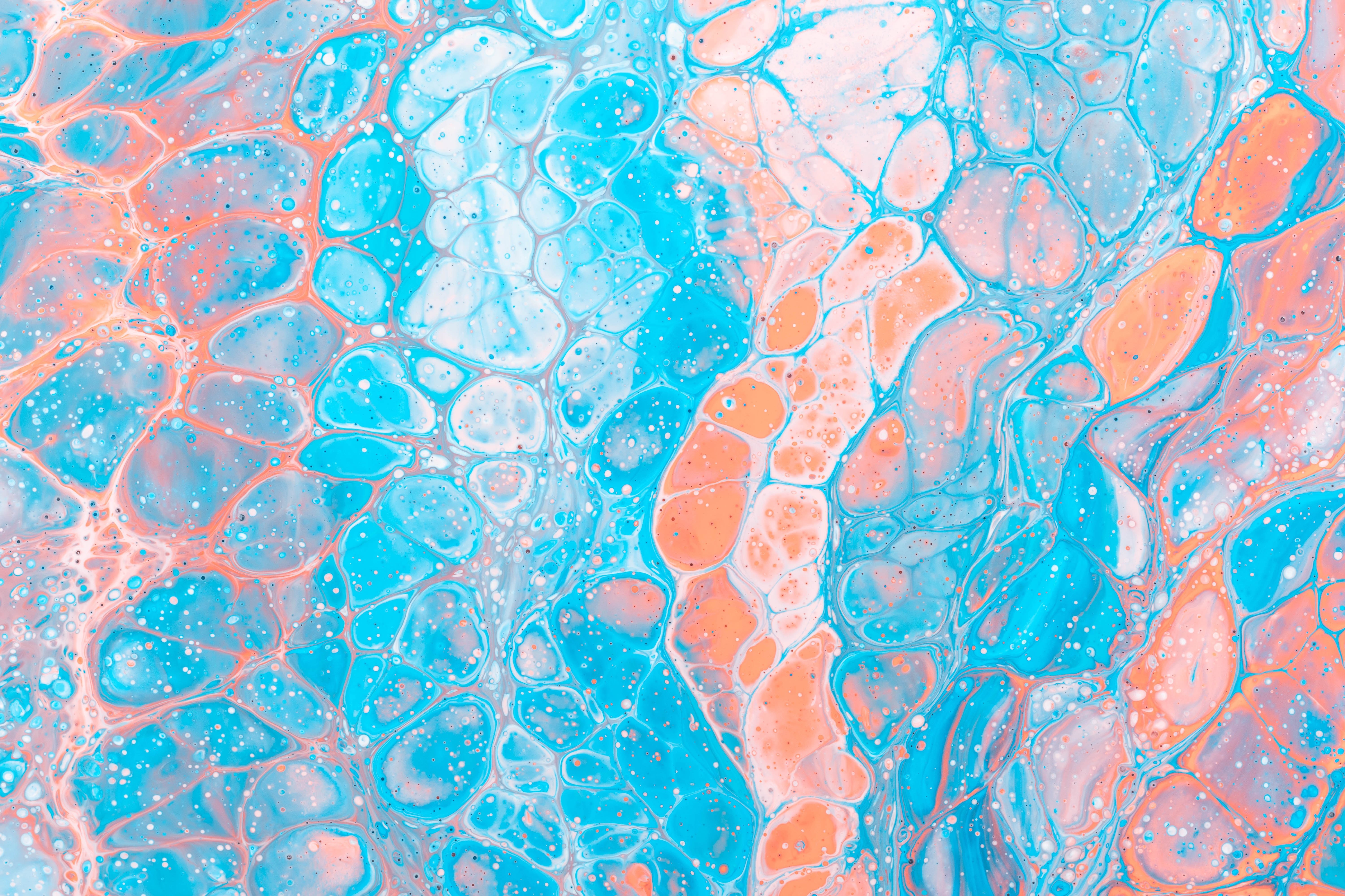Paint Splatter, Paint Splash, Abstract, Colorful, Orange, Blue Wallpaper Background with a maximum resolution of 6000x4000 px.