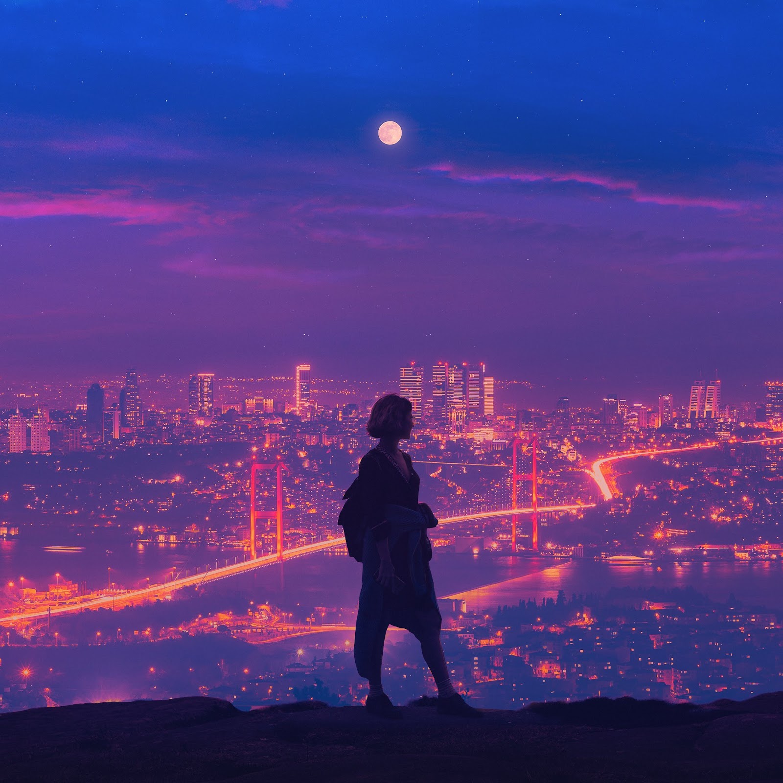 Photo Manipulation, City, Cityscape, Night, Moon 4K Wallpaper Background with a maximum resolution of 3840x2160 px.
