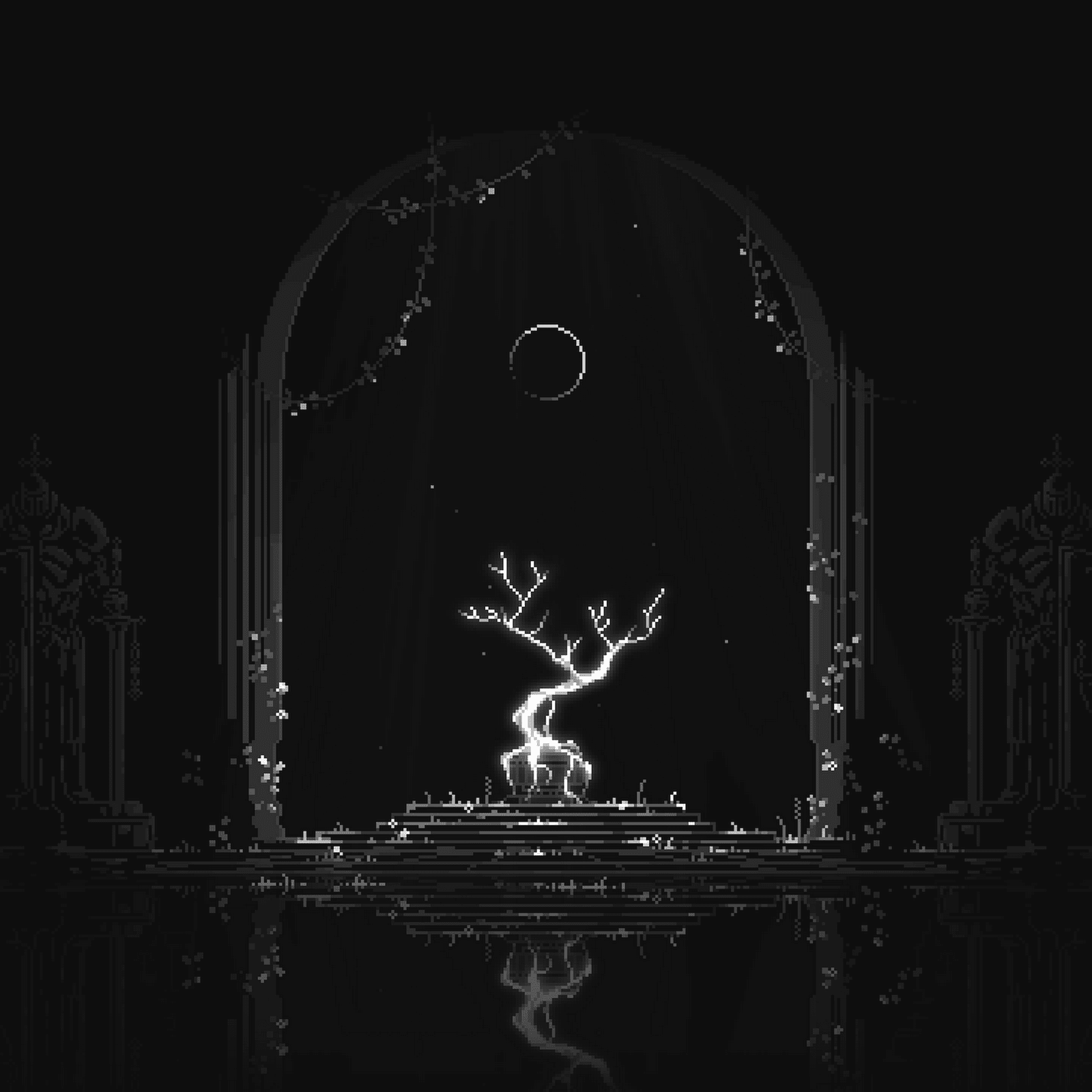 Pixelated, Monochrome, Reflection, Arch, Trees Full HD Desktop Wallpaper