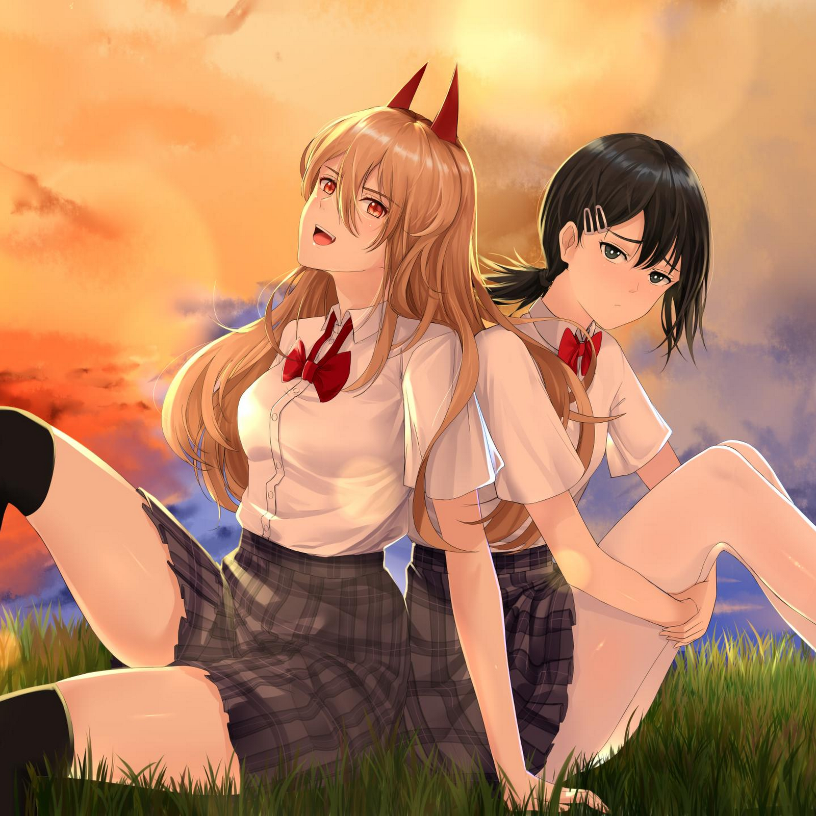 Power (Chainsaw Man), Kobeni (Chainsaw Man), Schoolgirl, Sunlight, Anime Girls 2K Desktop Wallpaper