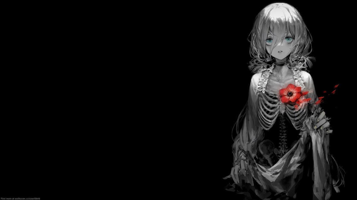 Selective Coloring, Black Background, Dark Background, Simple Background, Anime Girls 4K Wallpaper Background with a maximum resolution of 3840x2160 px.