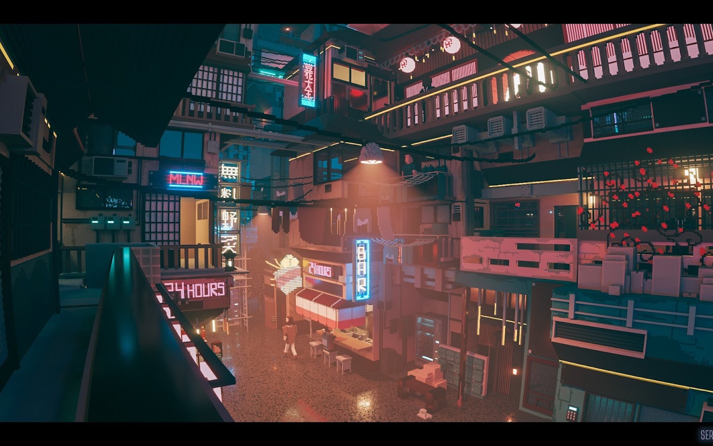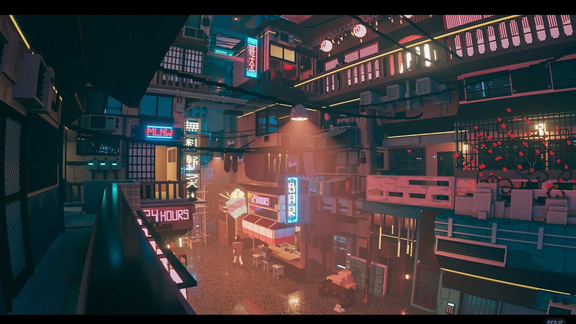 Sergey Munin, Pixel Art, Neon, Digital Art, Voxels Full HD Wallpaper Background with a maximum resolution of 1920x1119 px.