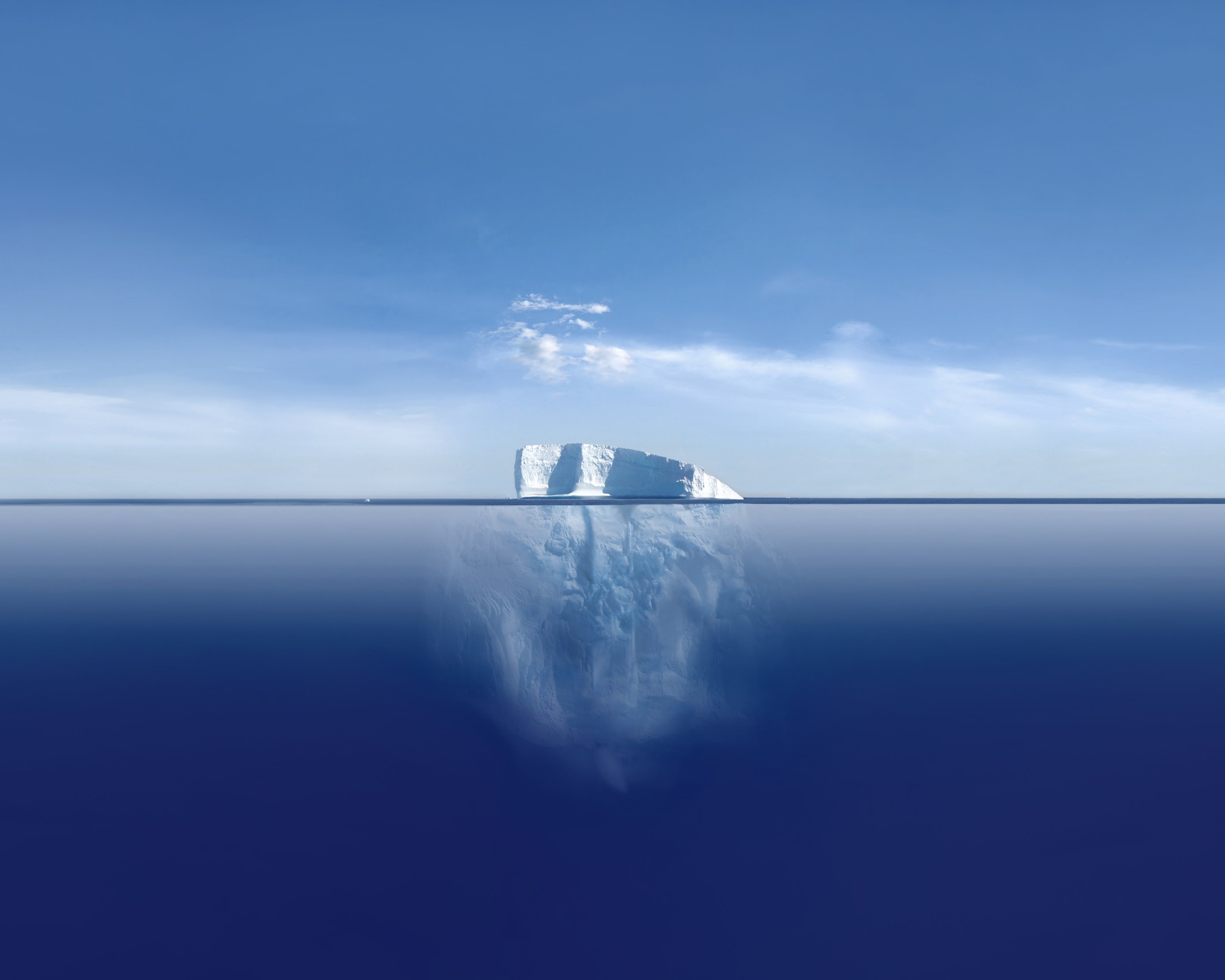 Sky, Sea, Iceberg, Simple Background, Minimalism 5K Desktop Wallpaper