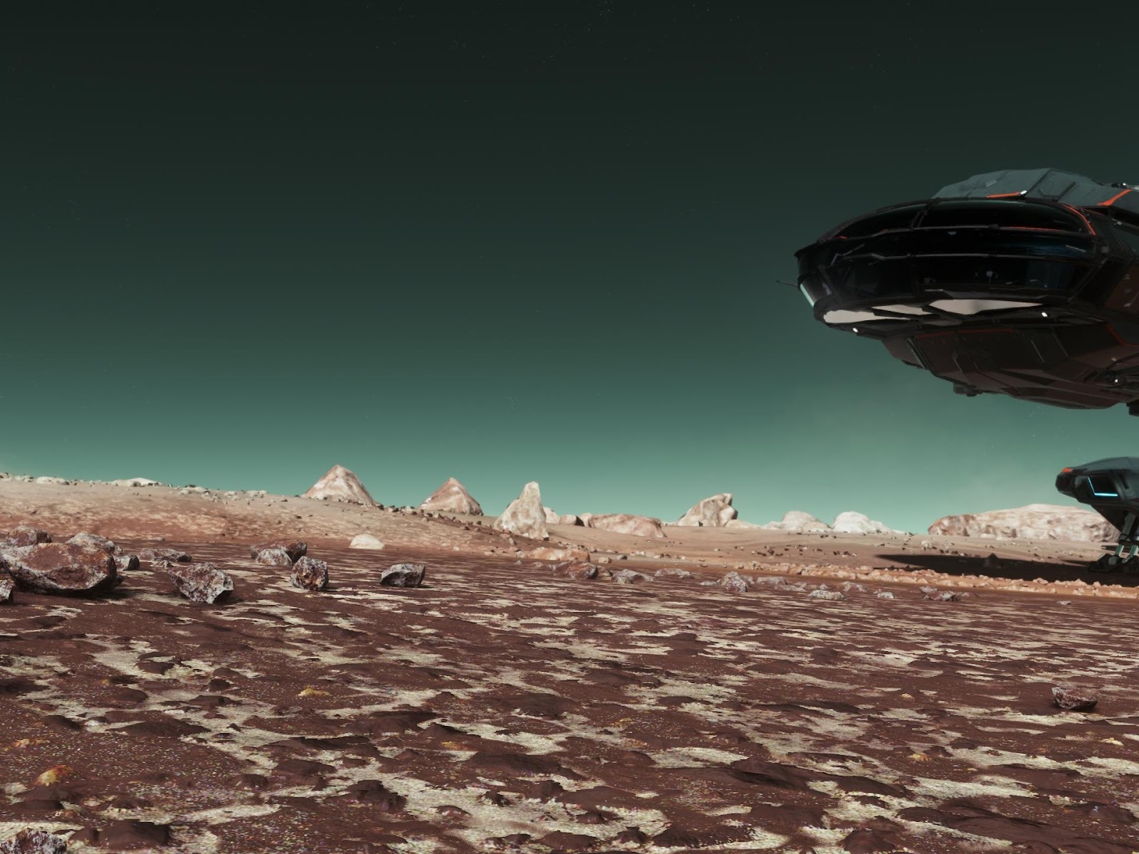 Spaceship, Mars, Sci-Fi, Terrain 2K Super Ultrawide Wallpaper Background with a maximum resolution of 5120x1440 px.