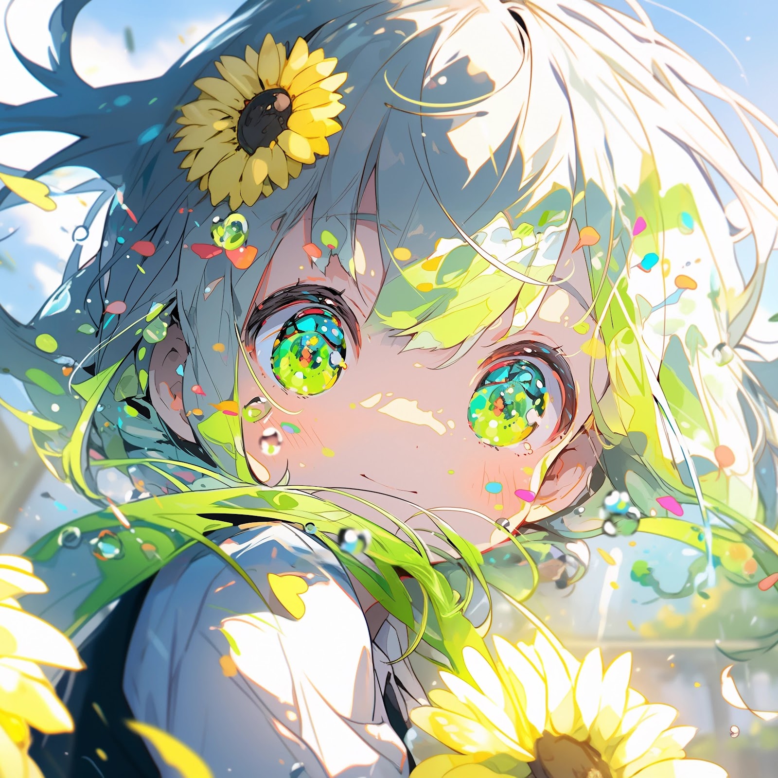 Sunflowers, Flower In Hair, Petals, Sky, Smiling 5K Desktop Wallpaper