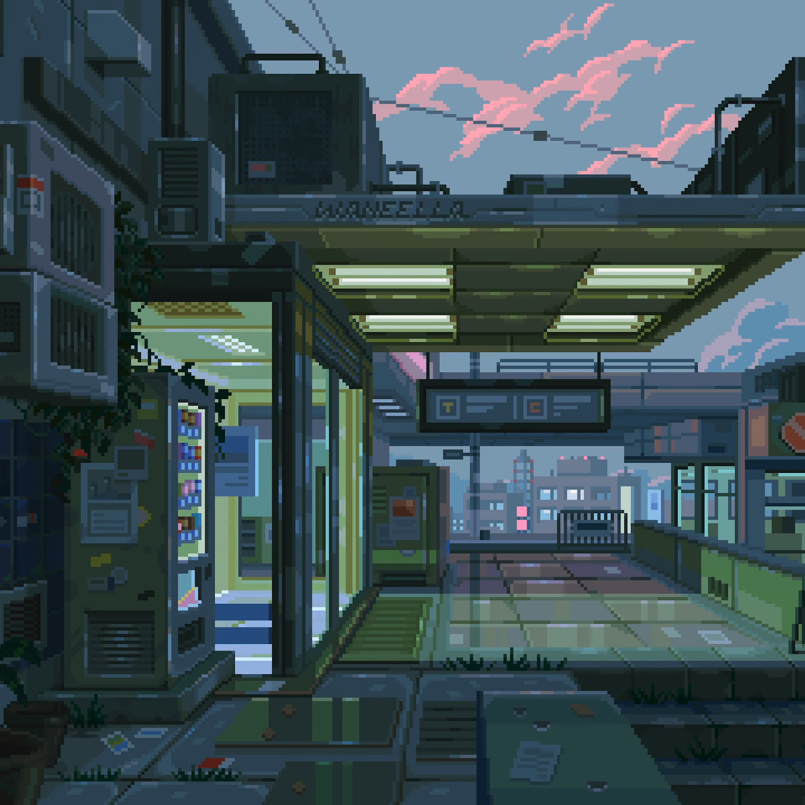 Waneella, City, Pixel Art, Lights, Cyberpunk 2K Desktop Wallpaper