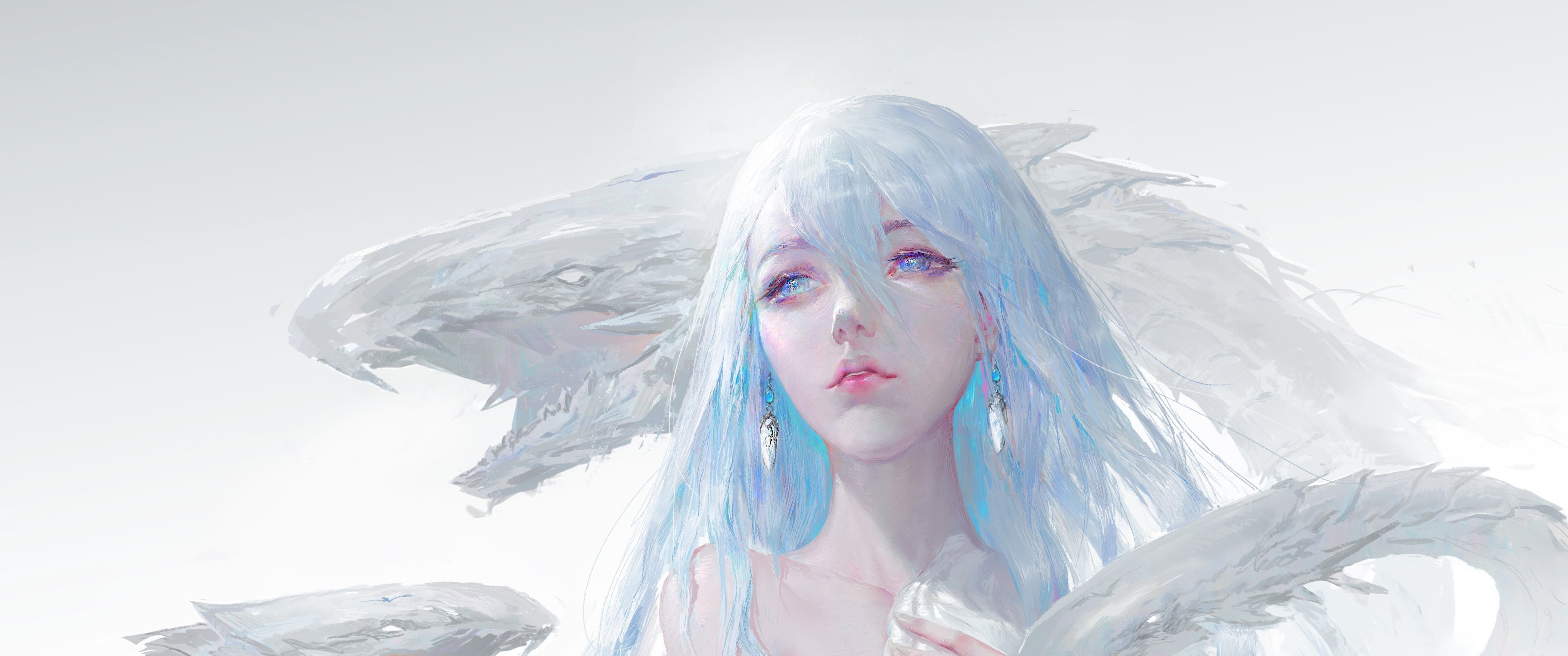 Yu-Gi-Oh!, Blue Hair, Dragon, White Background, Loose Clothing 4K Wallpaper Background with a maximum resolution of 5126x2651 px.