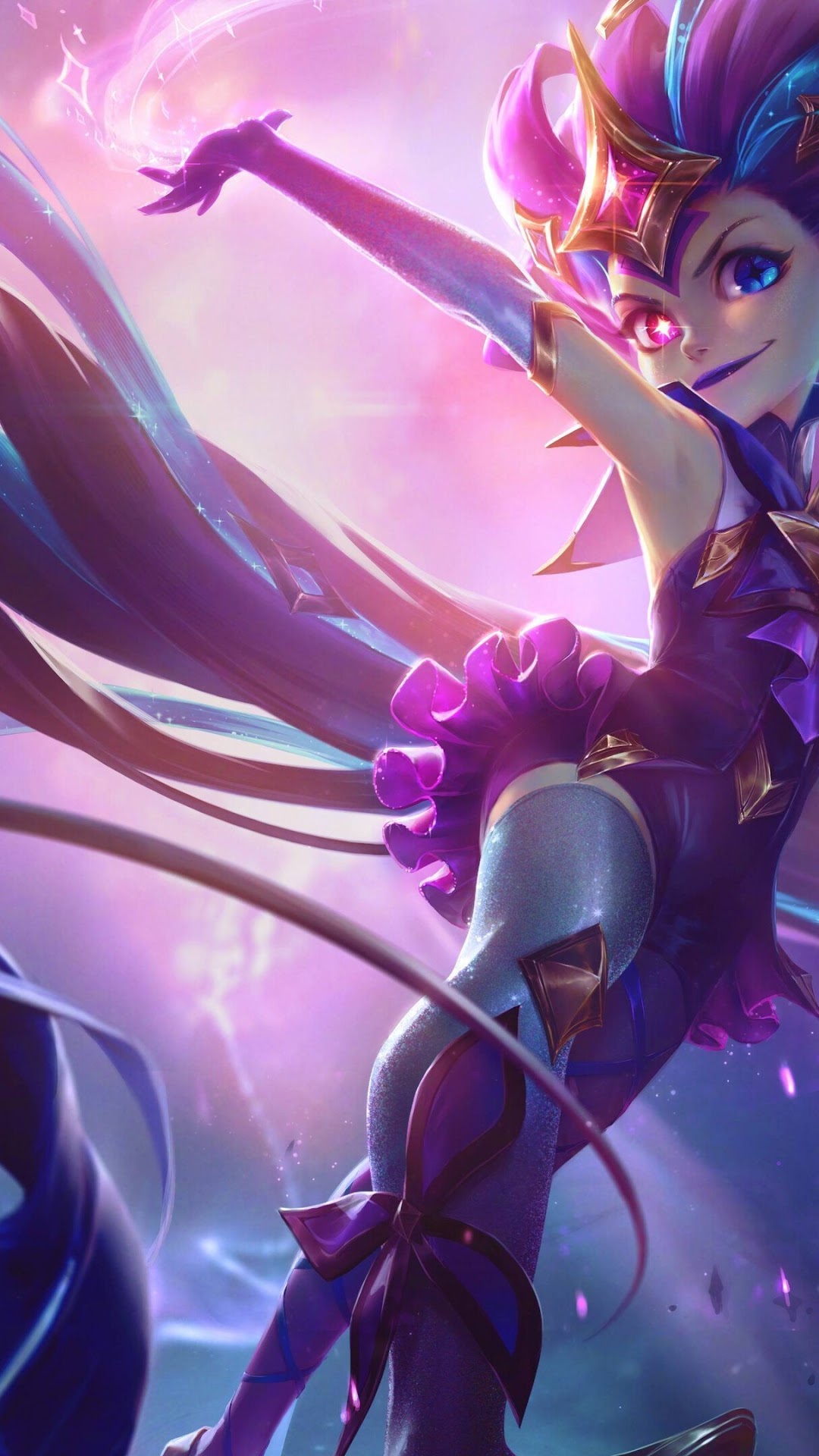 Zoe (League of Legends), Star Guardian, Women, Pink Hair, Blue Hair, Pink Dress 4K Phone Wallpaper