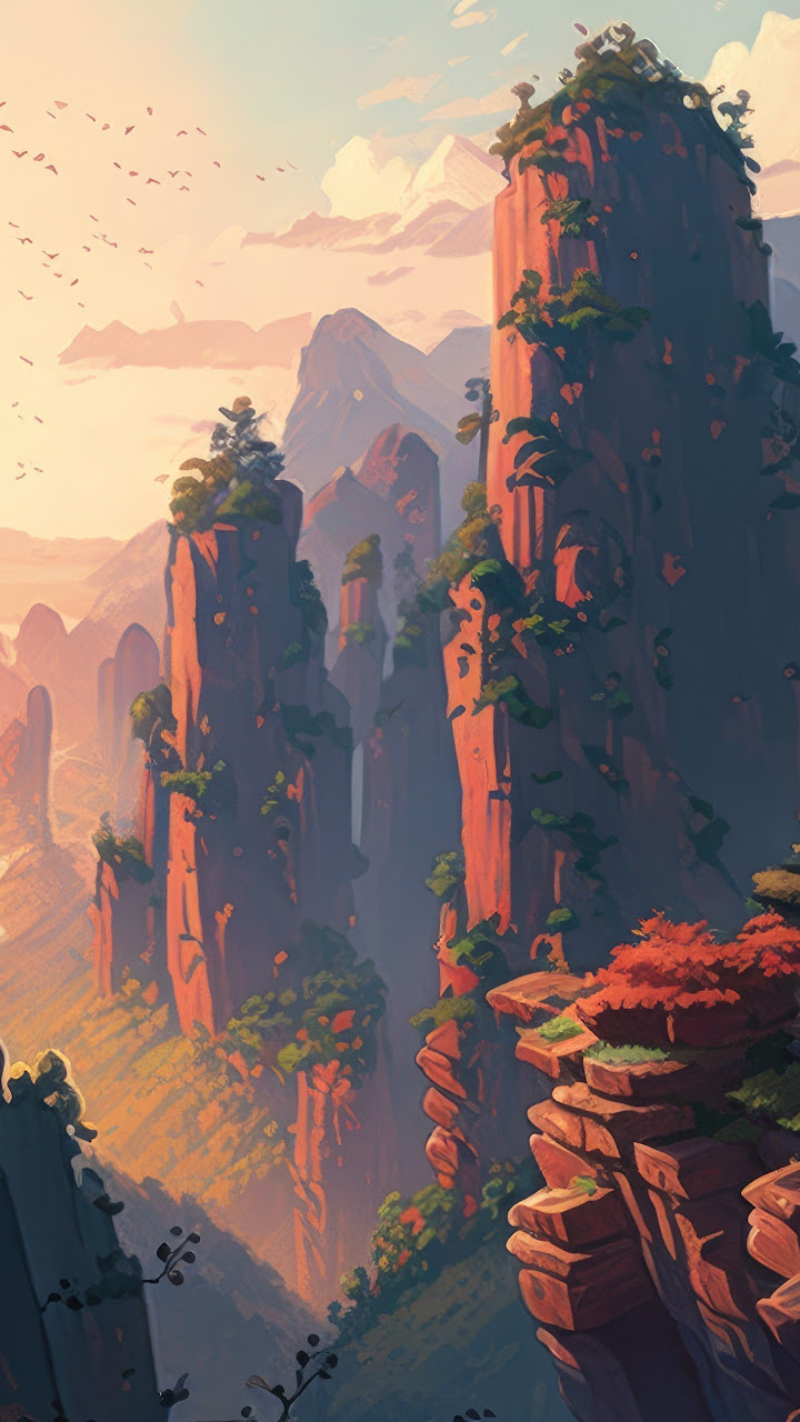 Ai Art, Illustration, Mountains, China, Zhangjiajie National Park 4K Wallpaper Background with a maximum resolution of 4579x2616 px.