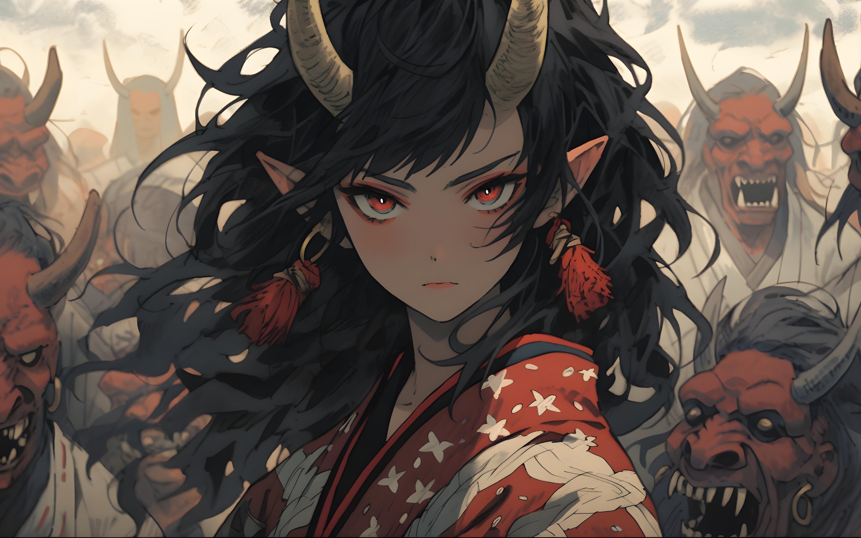 Ai Art, Oni 5K Wallpaper Background with a maximum resolution of 5608x3154 px.