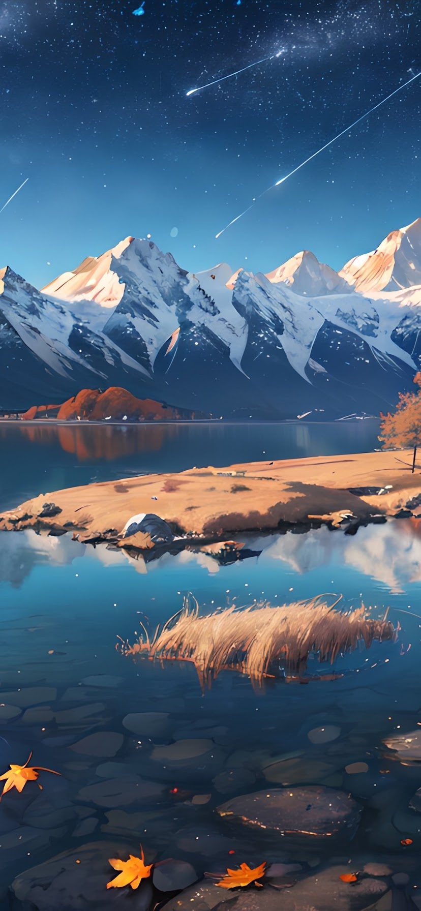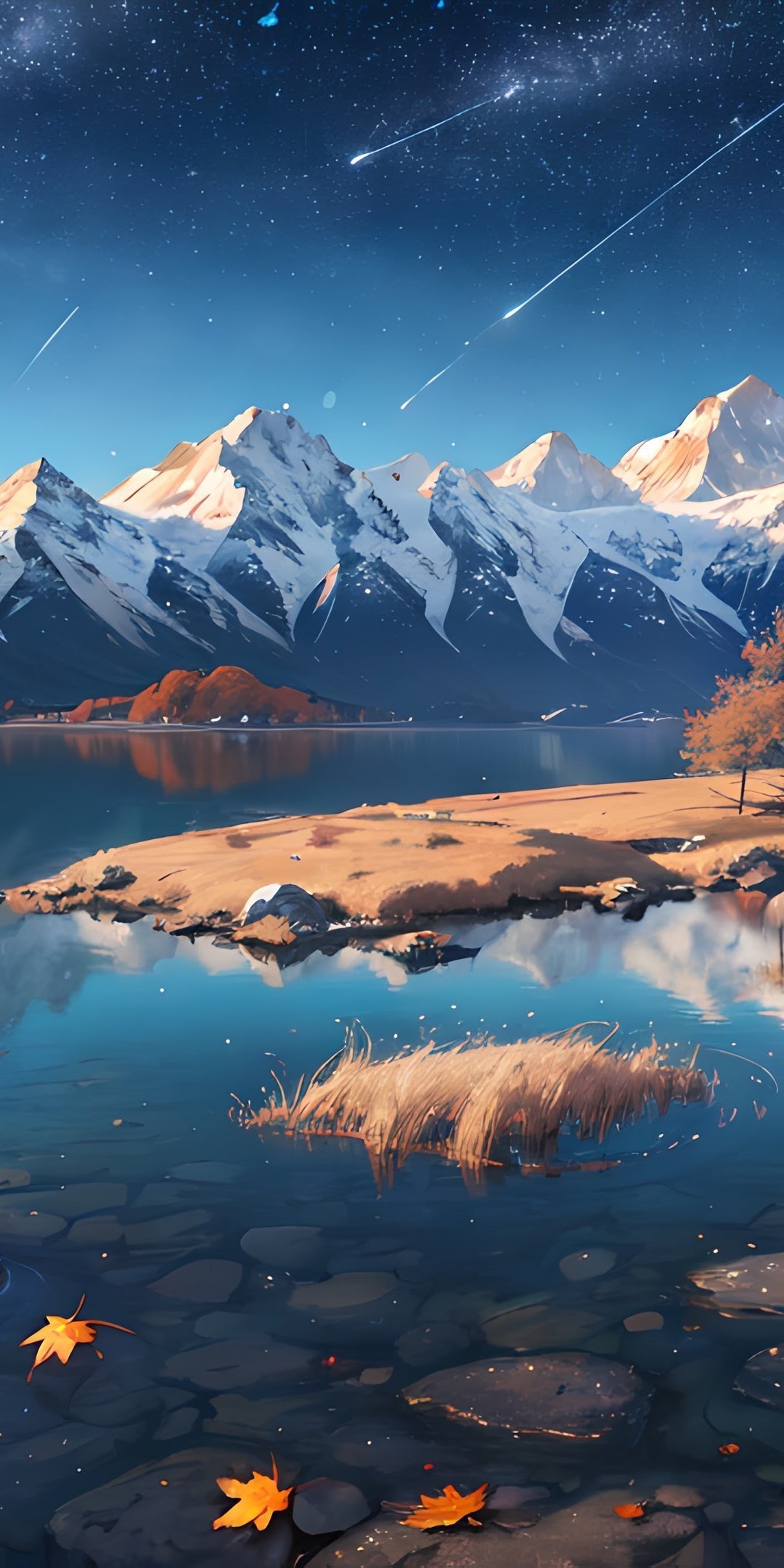 Ai Art, Snowy Peak, Water, Snow Covered, Mountains 4K Desktop, iPhone Wallpaper Background