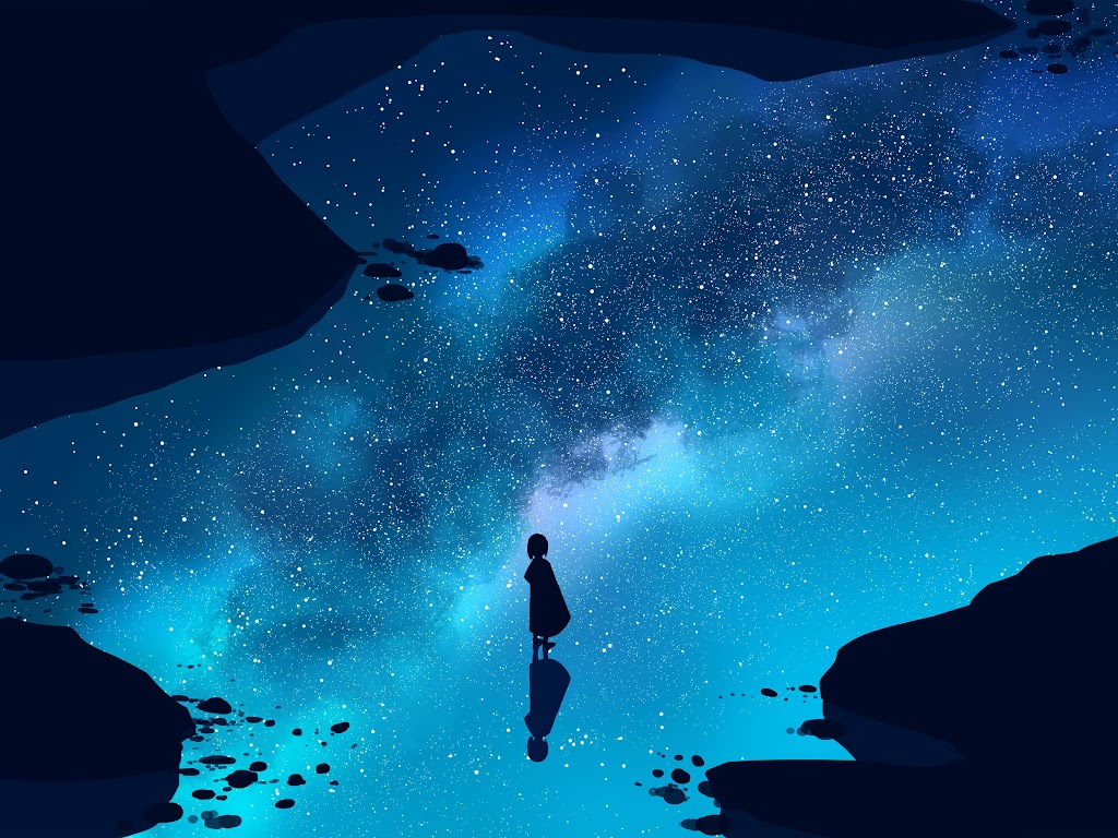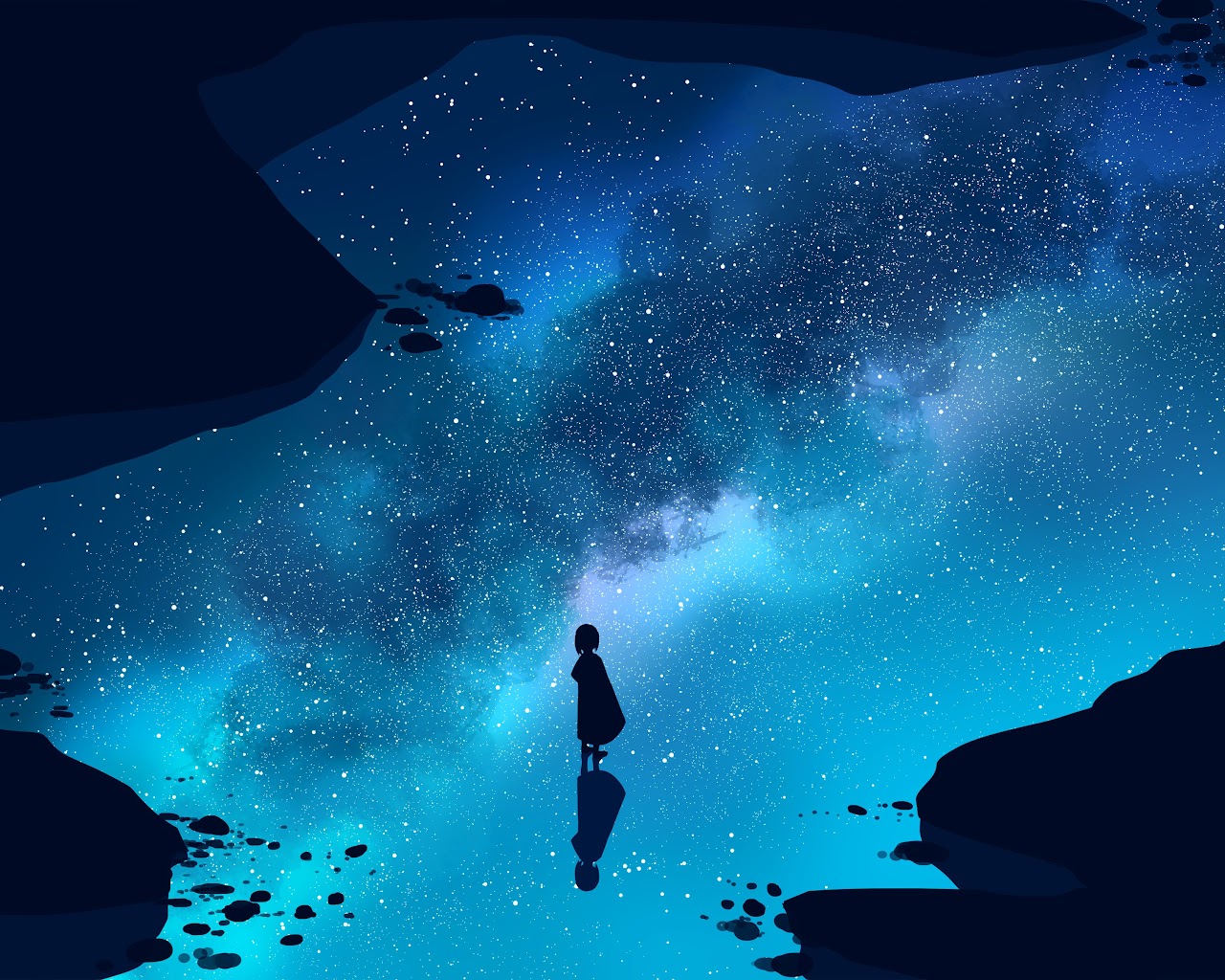 Anime, Anime Sky, Anime Girls, Galaxy, Stars 4K Phone Wallpaper