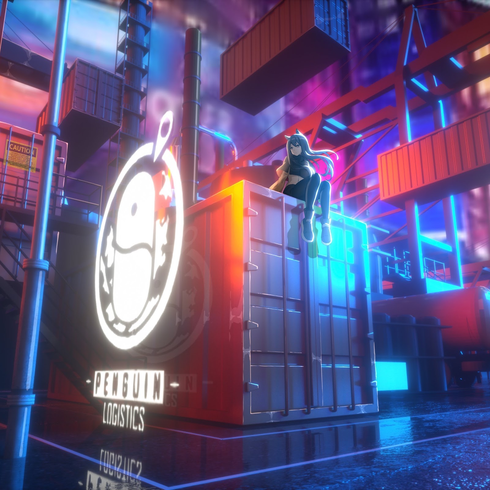 Anime Girls, Artwork, Container, Caution, Cgi 4K Desktop Wallpaper