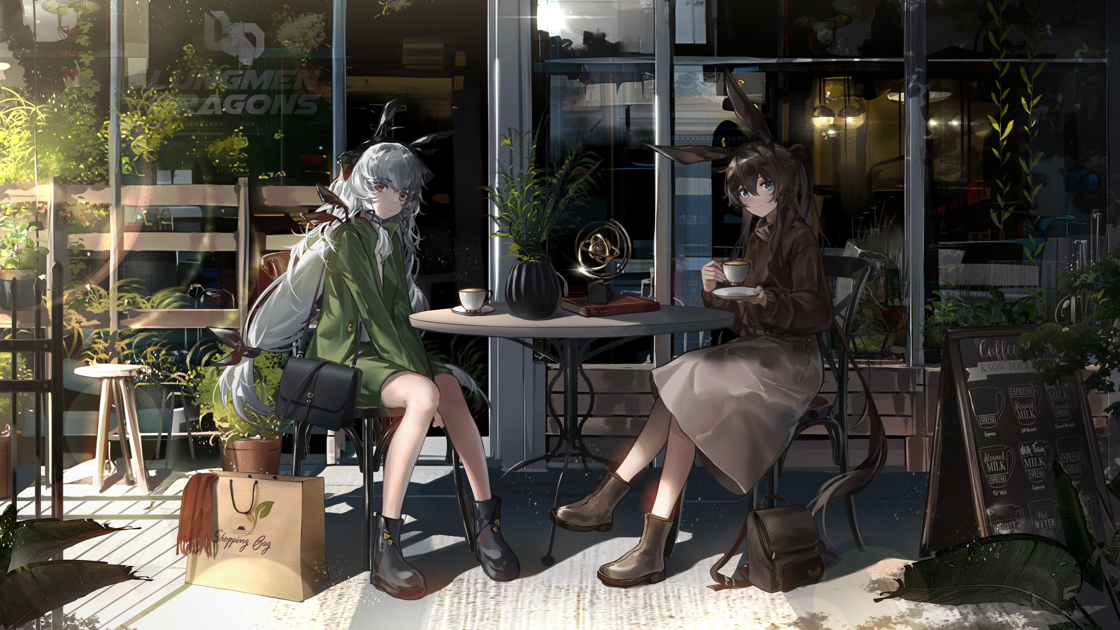 Anime Girls, Artwork, Digital Art, Cat Girl, Caffe 4K Wallpaper Background with a maximum resolution of 3840x2160 px.