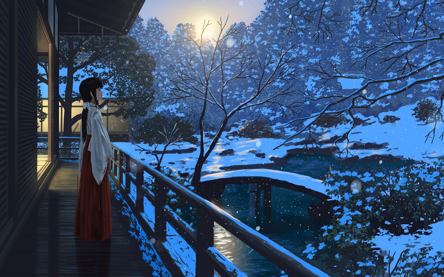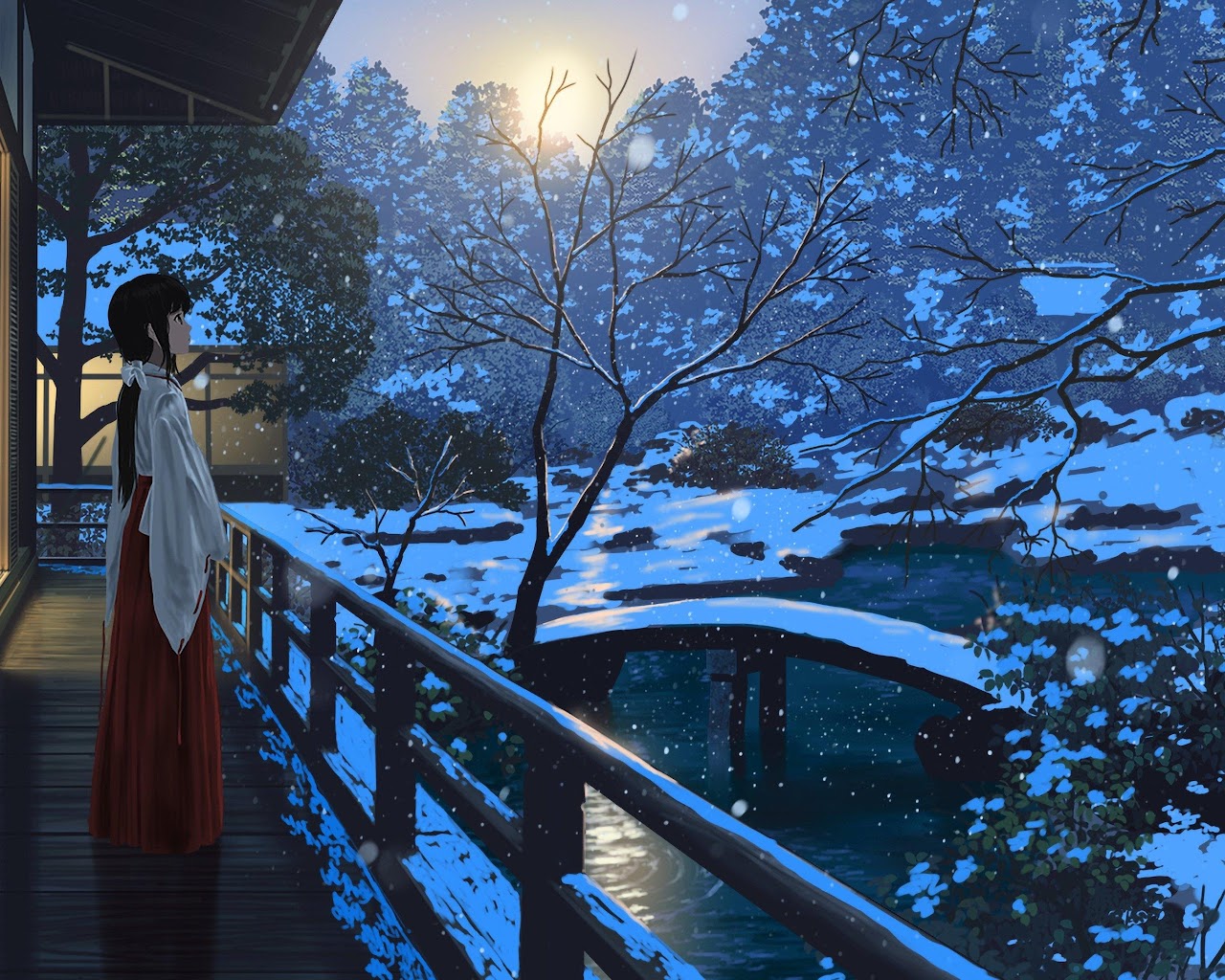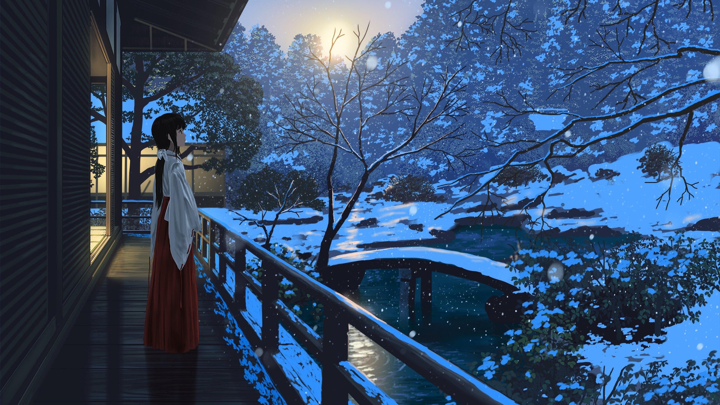 Anime Girls, Kimono, Alone, Outdoors, Bridge 4K Wallpaper Background with a maximum resolution of 3840x2160 px.