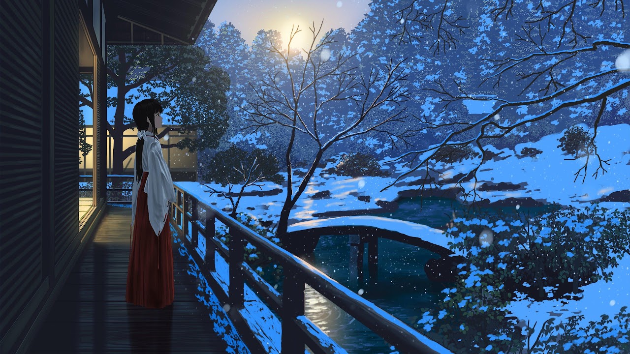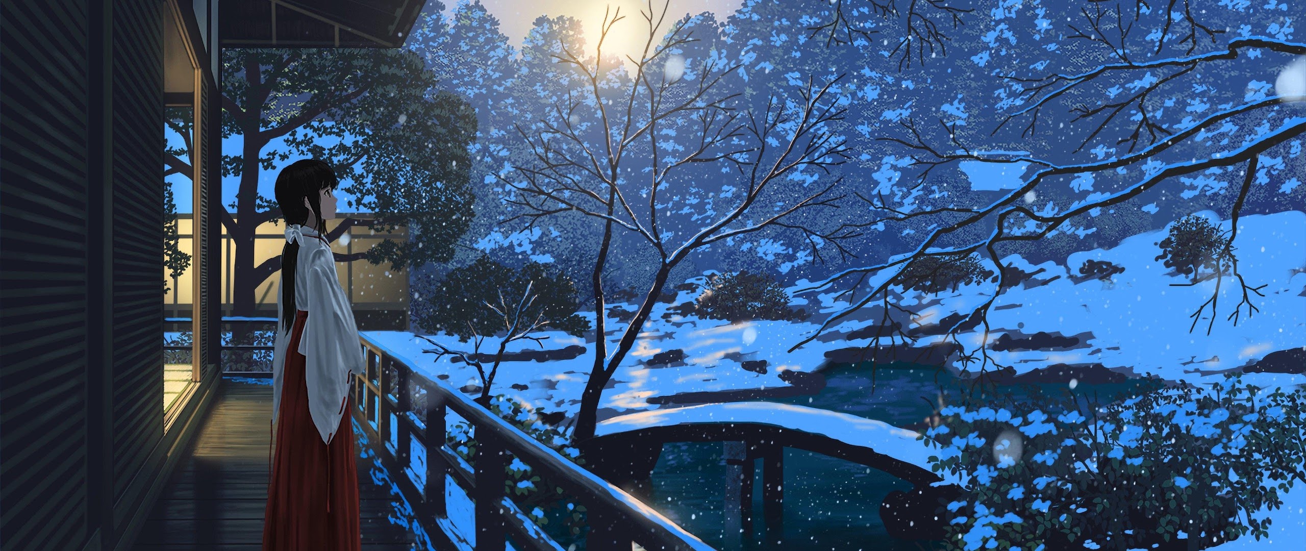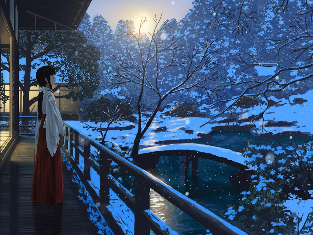 Anime Girls, Kimono, Alone, Outdoors, Bridge 4K Wallpaper Background with a maximum resolution of 3840x2160 px.