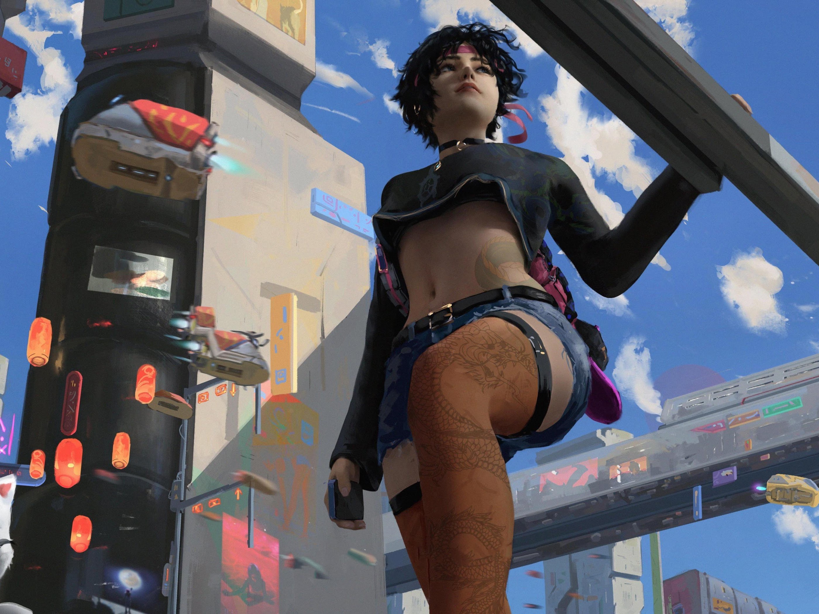 Anime Girls, Original Characters, Cats, Cla Rity, Chinese Dragon 4K Wallpaper Background with a maximum resolution of 4096x2297 px.