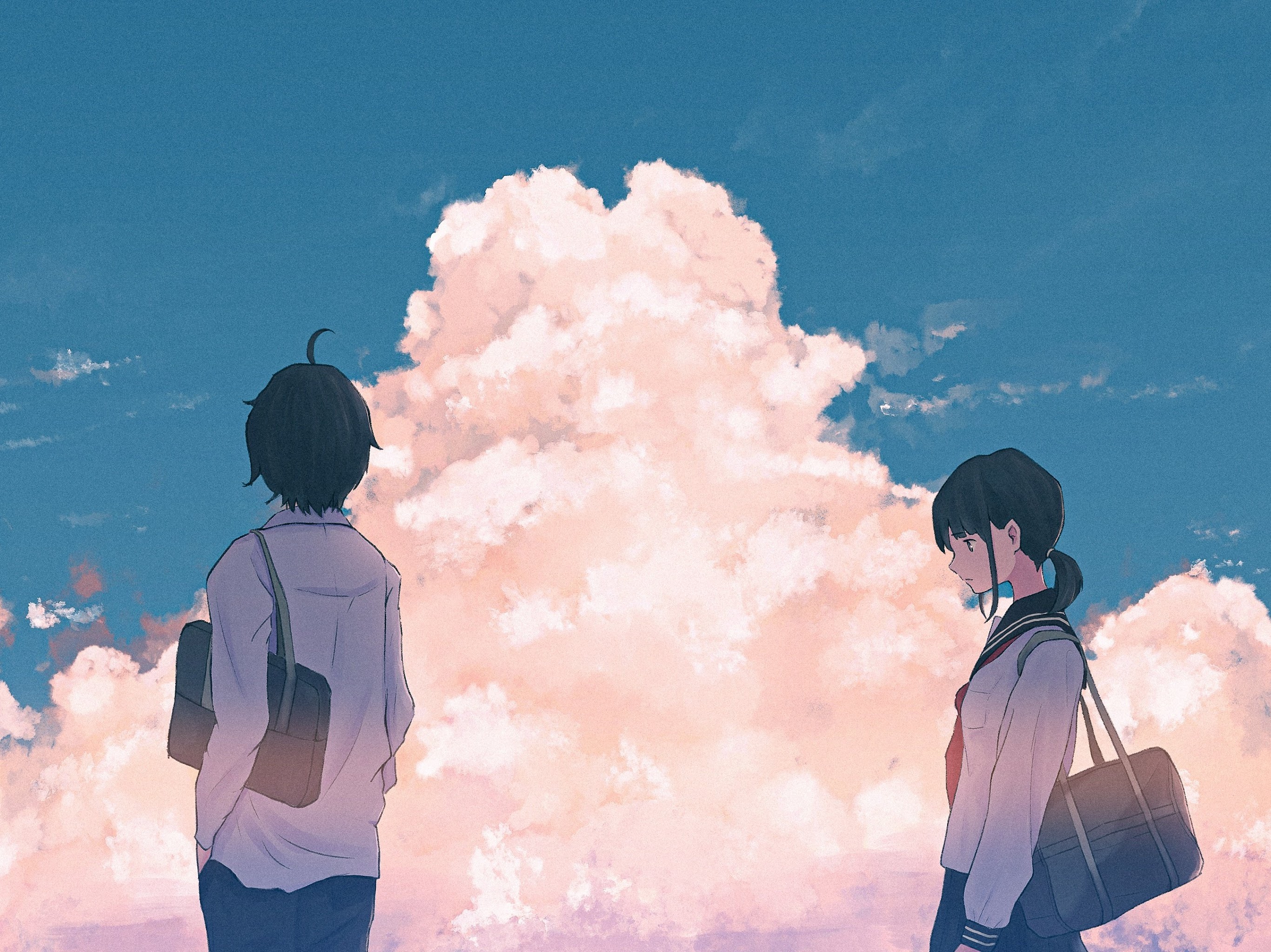 Anime Sky, Pixiv, Clouds, Outdoors, Anime Girls 4K Desktop Wallpaper
