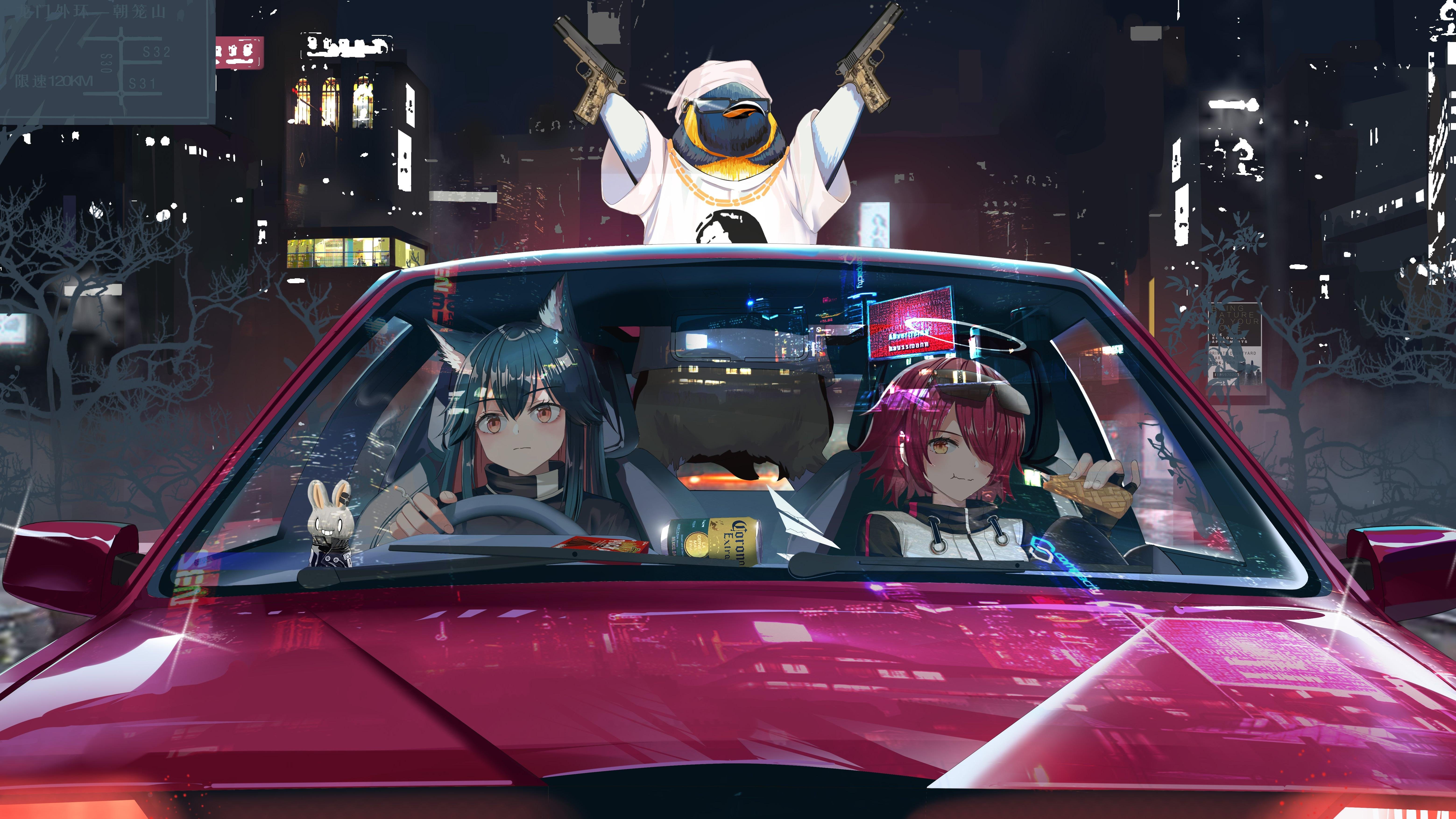 Arknights, Exusiai (Arknights), Texas (Arknights), Animal Ears, Car 5K Desktop Wallpaper