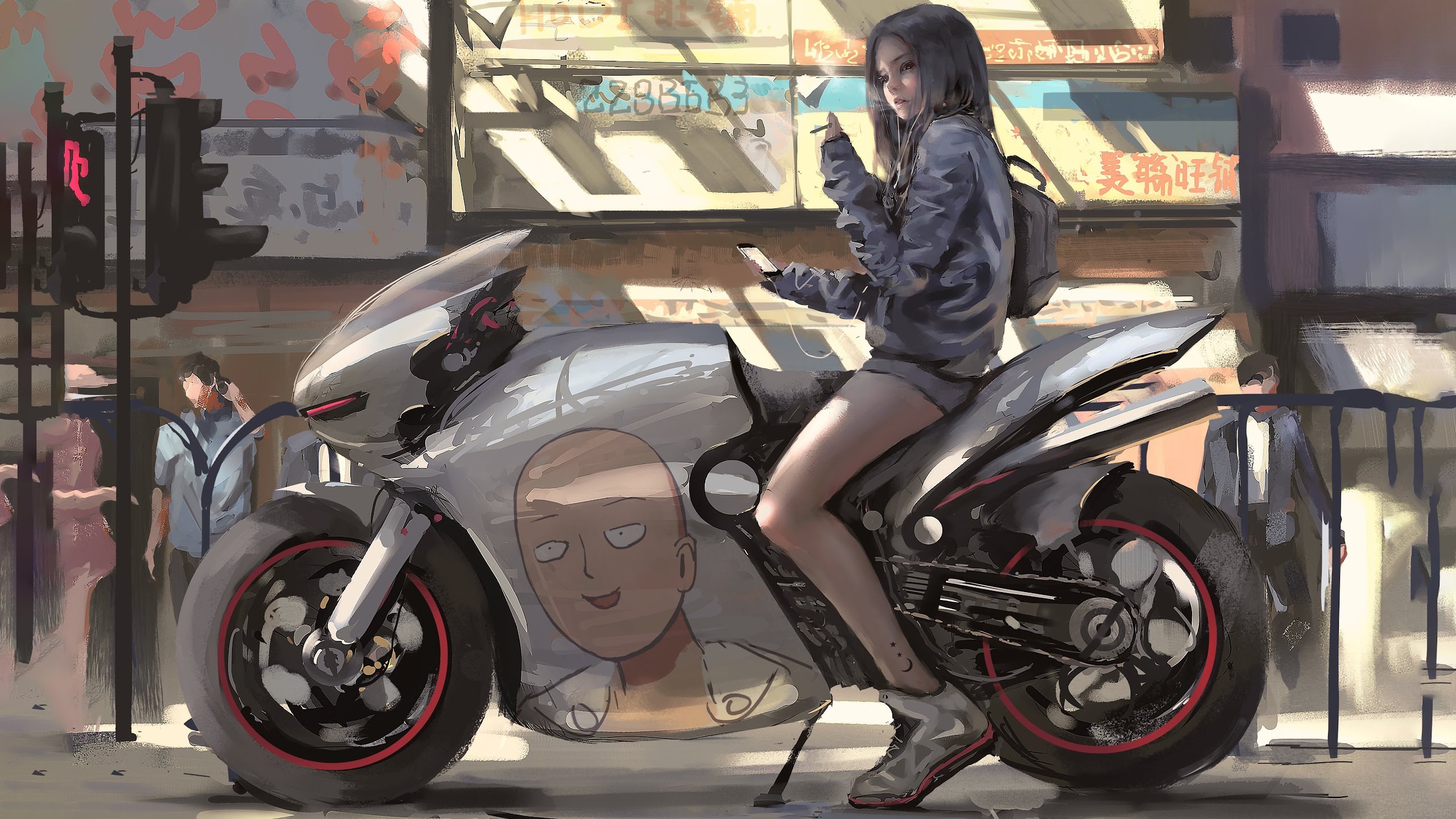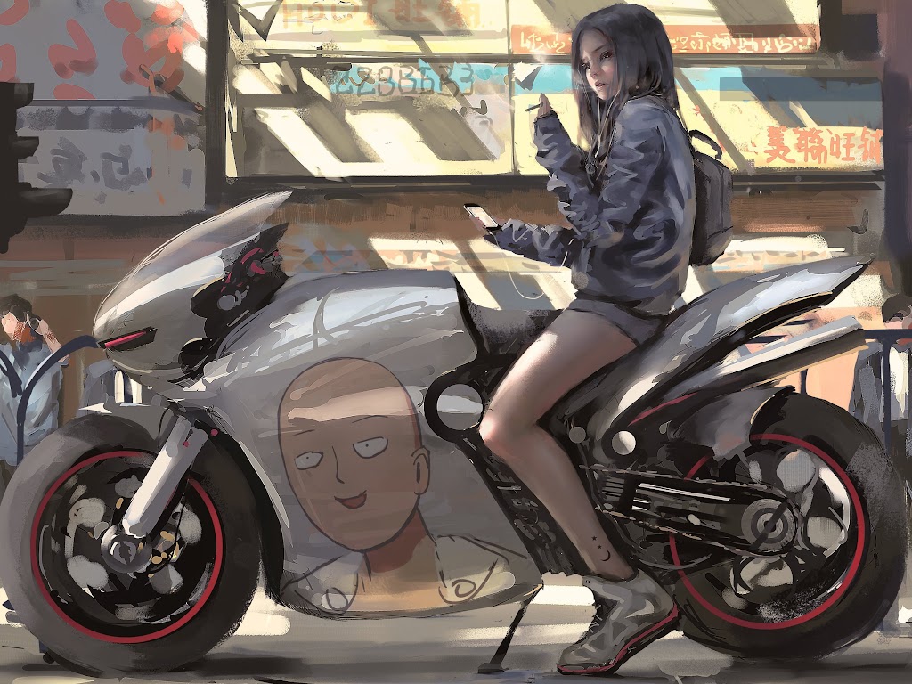 Artwork, Women, Digital Art, Women With Motorcycles, Brunette 4K Wallpaper Background with a maximum resolution of 4000x2566 px.