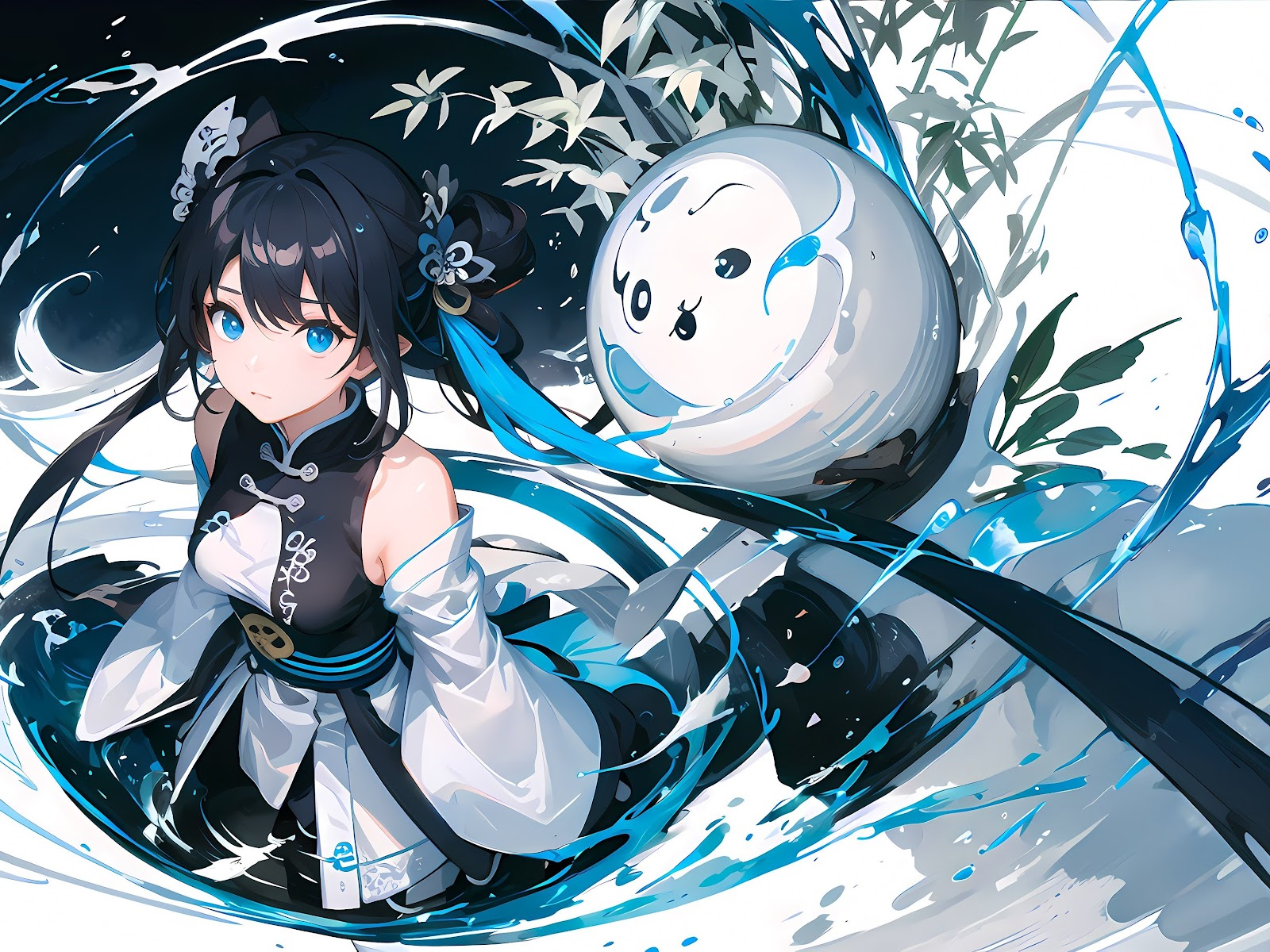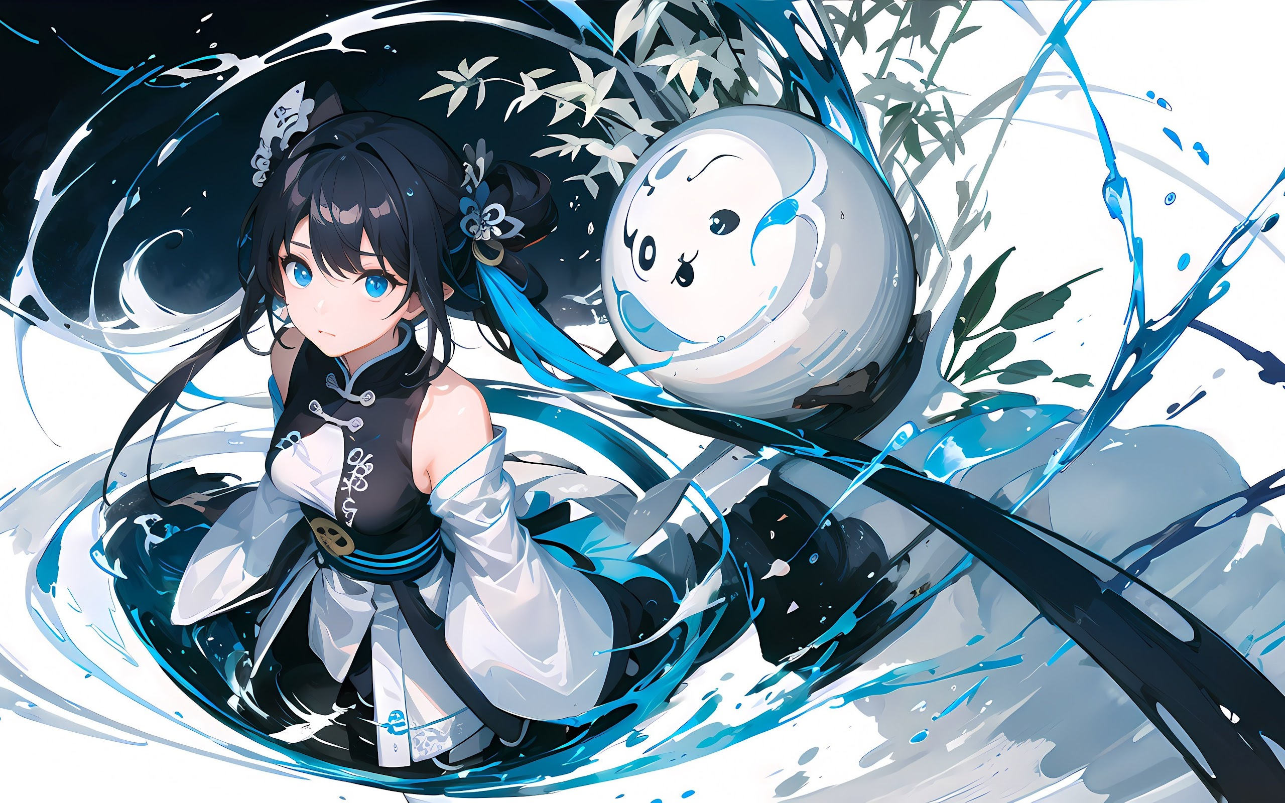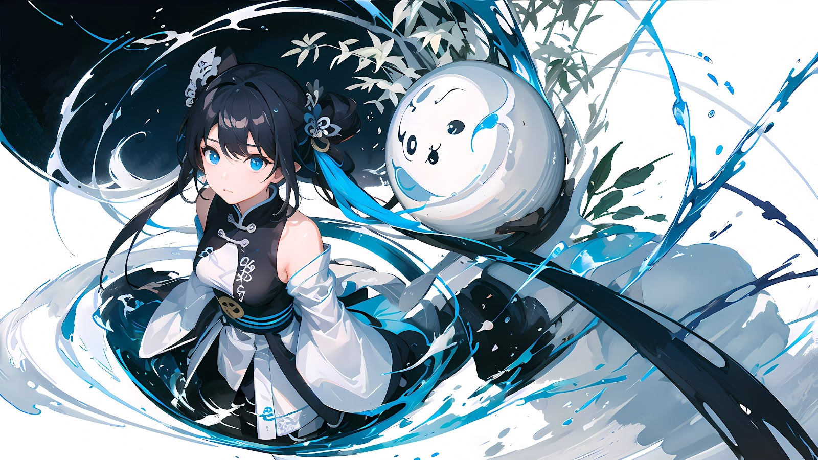 Anime, Girl, Chinese, Orb, Ink 4K Wallpaper Background with a maximum resolution of 4032x2268 px.
