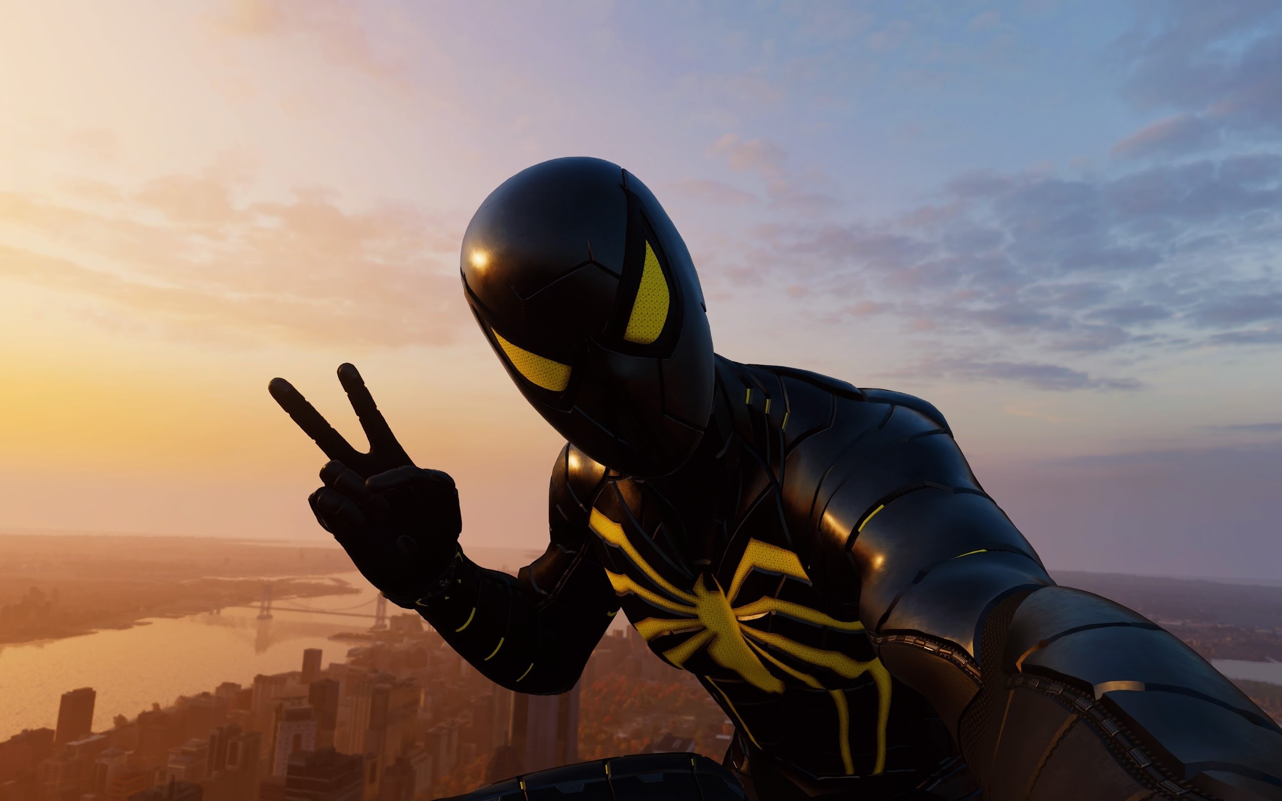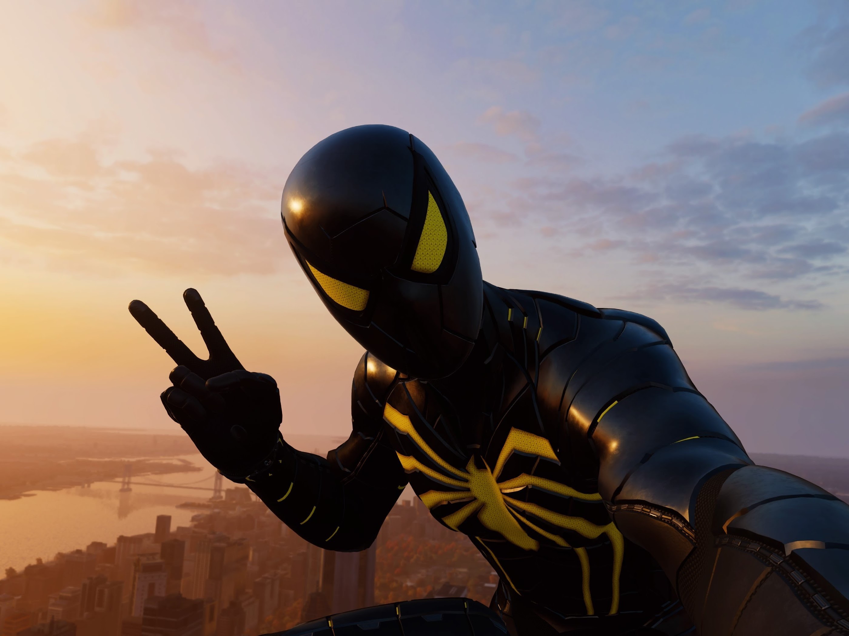 Black Suited Spiderman, Spider-Man, Superhero 4K Wallpaper Background with a maximum resolution of 3840x2160 px.