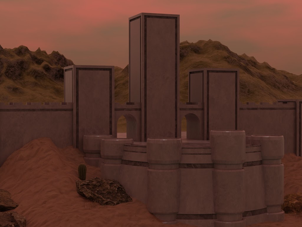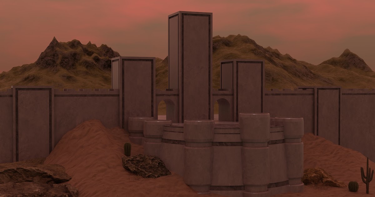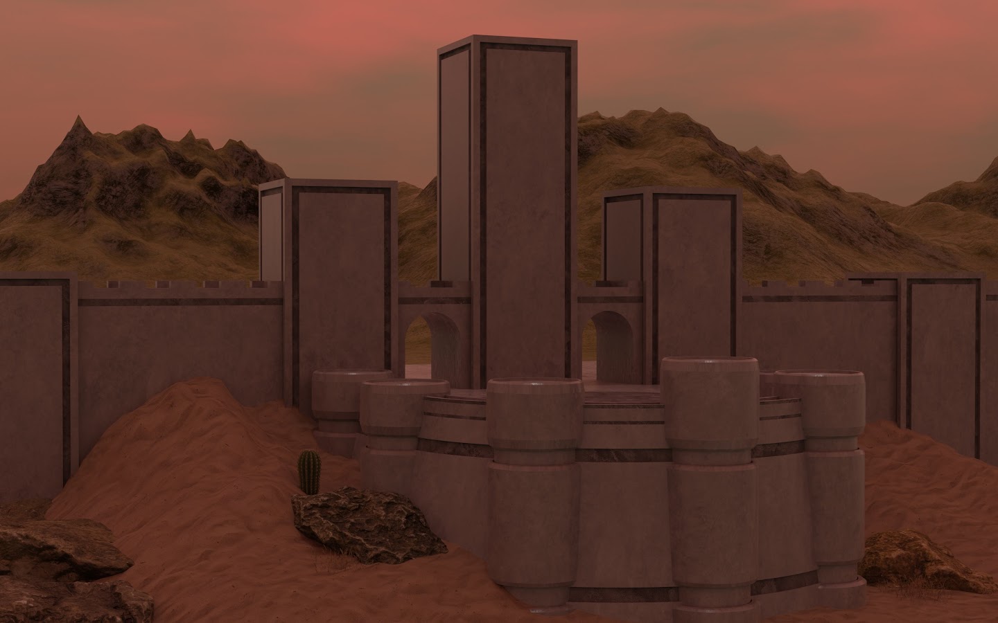 Blender, Building, Digital Art, Sand, Cactus 4K Wallpaper Background with a maximum resolution of 4096x2160 px.