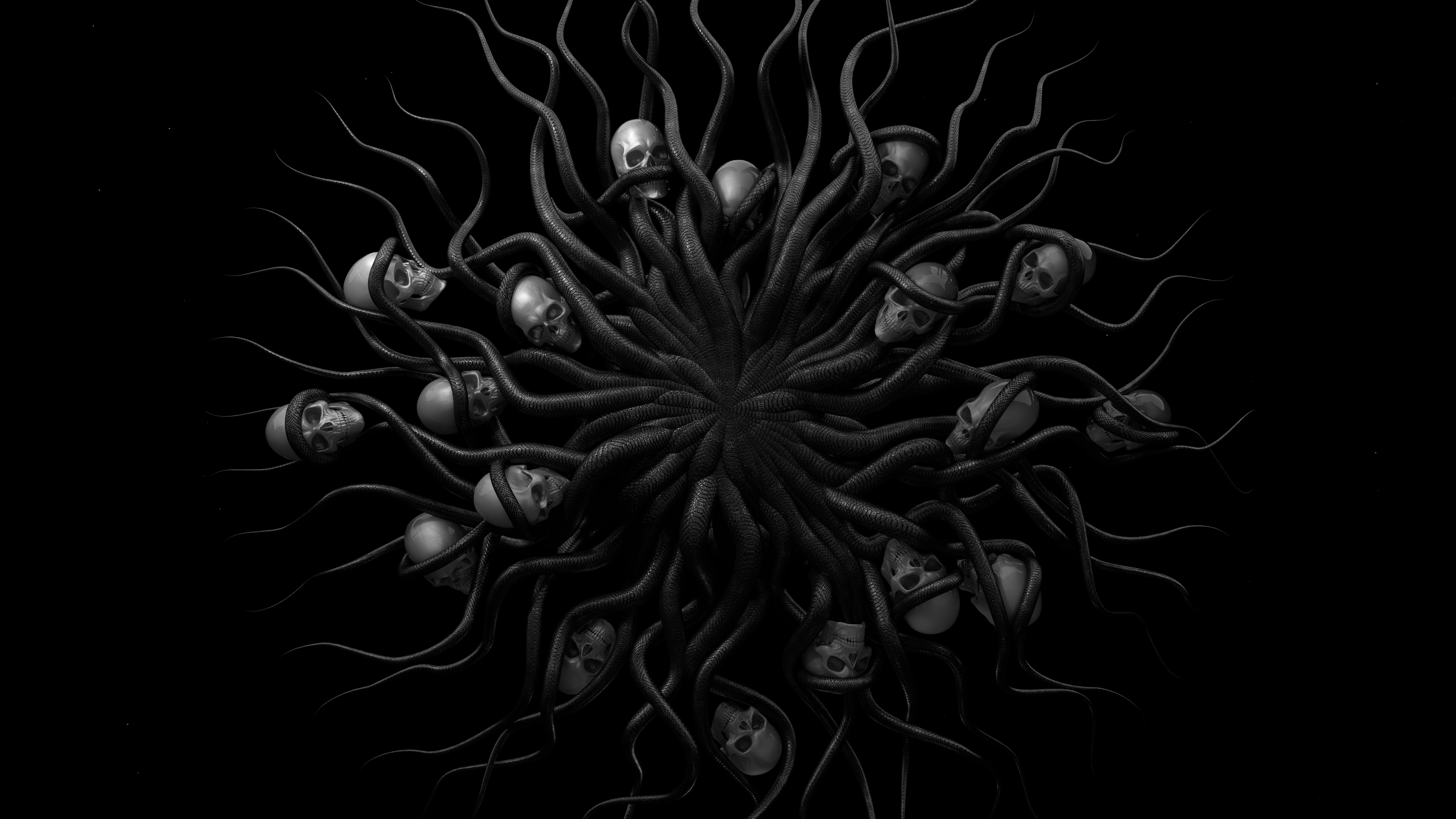 Cgi, Black, Horror, Skull And Bones, Skull 8K Wallpaper Background with a maximum resolution of 7680x4320 px.