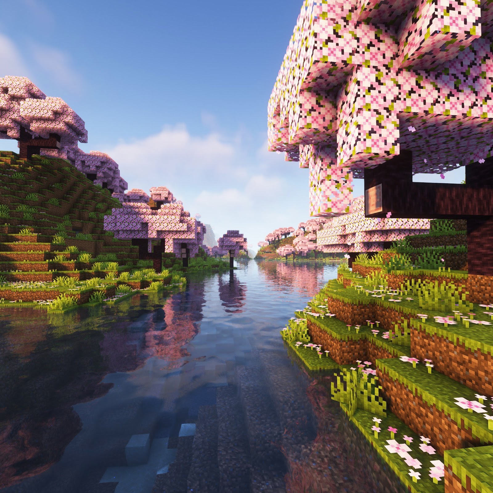 Cherry Blossom, Water, Minecraft, Video Games, Cube 4K Wallpaper Background with a maximum resolution of 3840x2160 px.