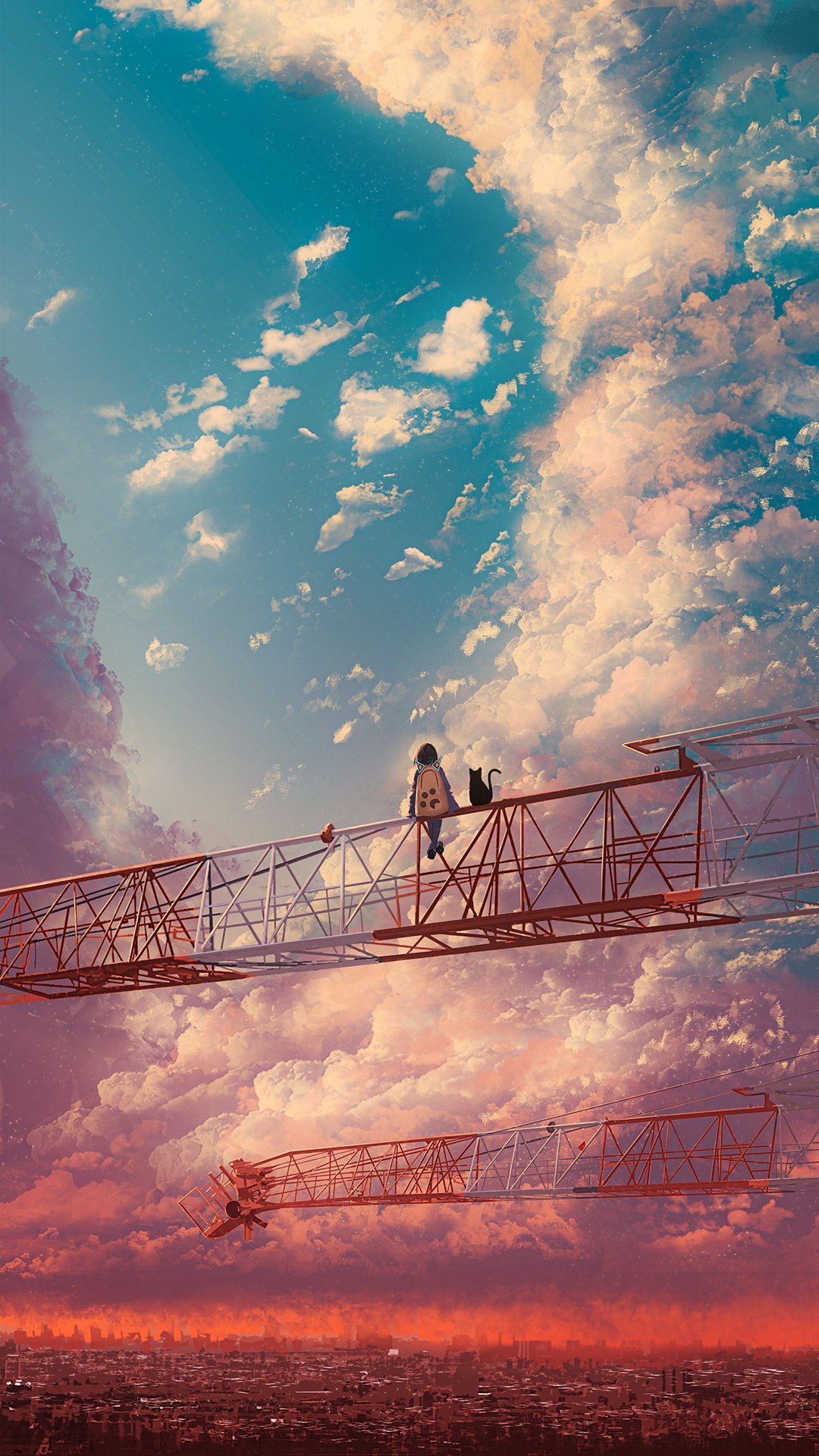 Chocoshi, Women Outdoors, Anime Girls, Portrait Display, Rear View Full HD iPhone Phone Wallpaper