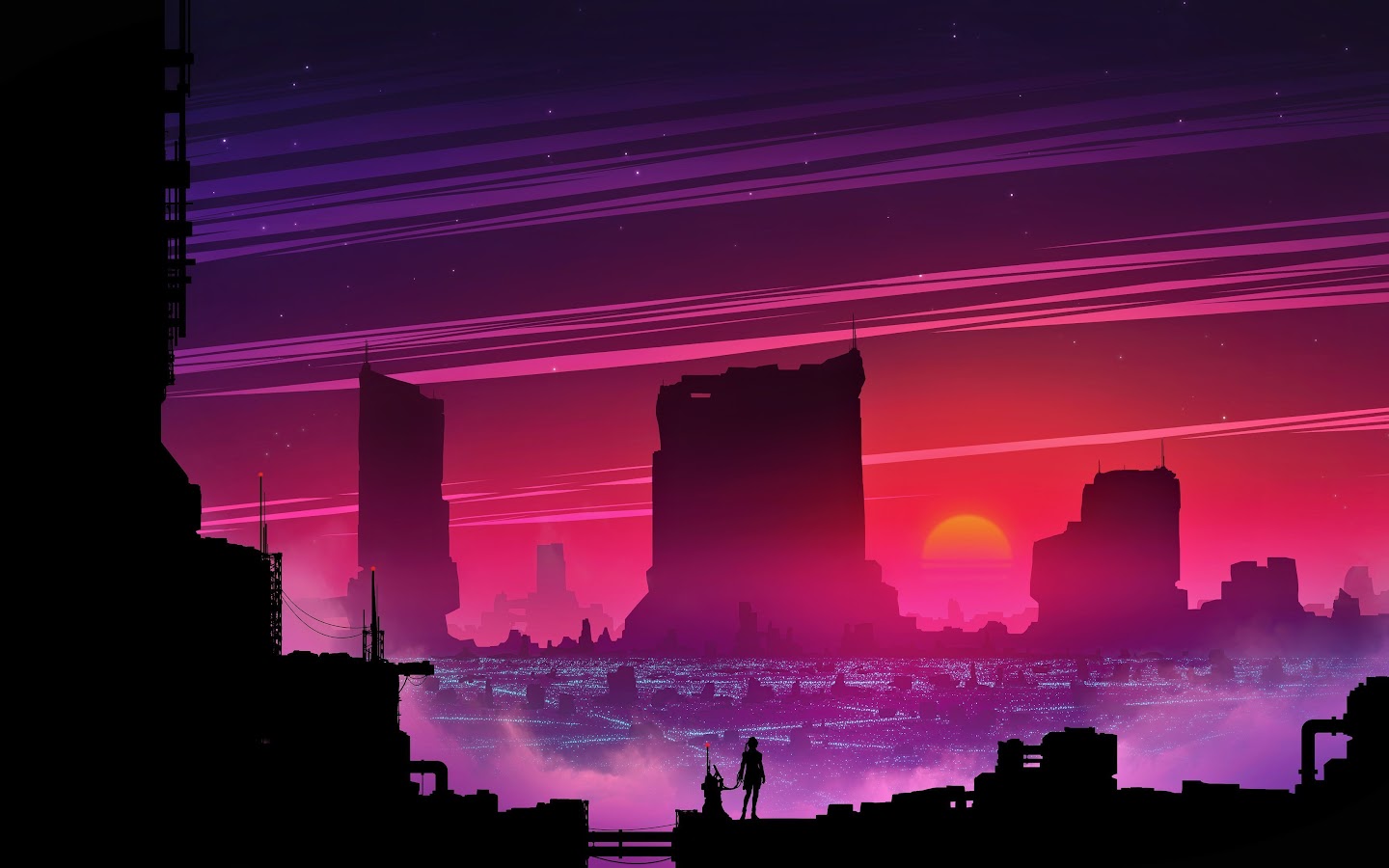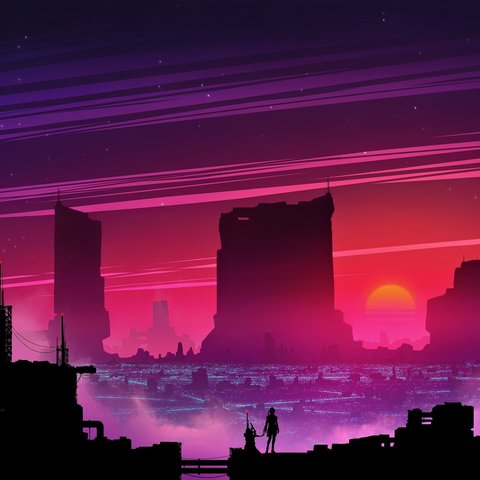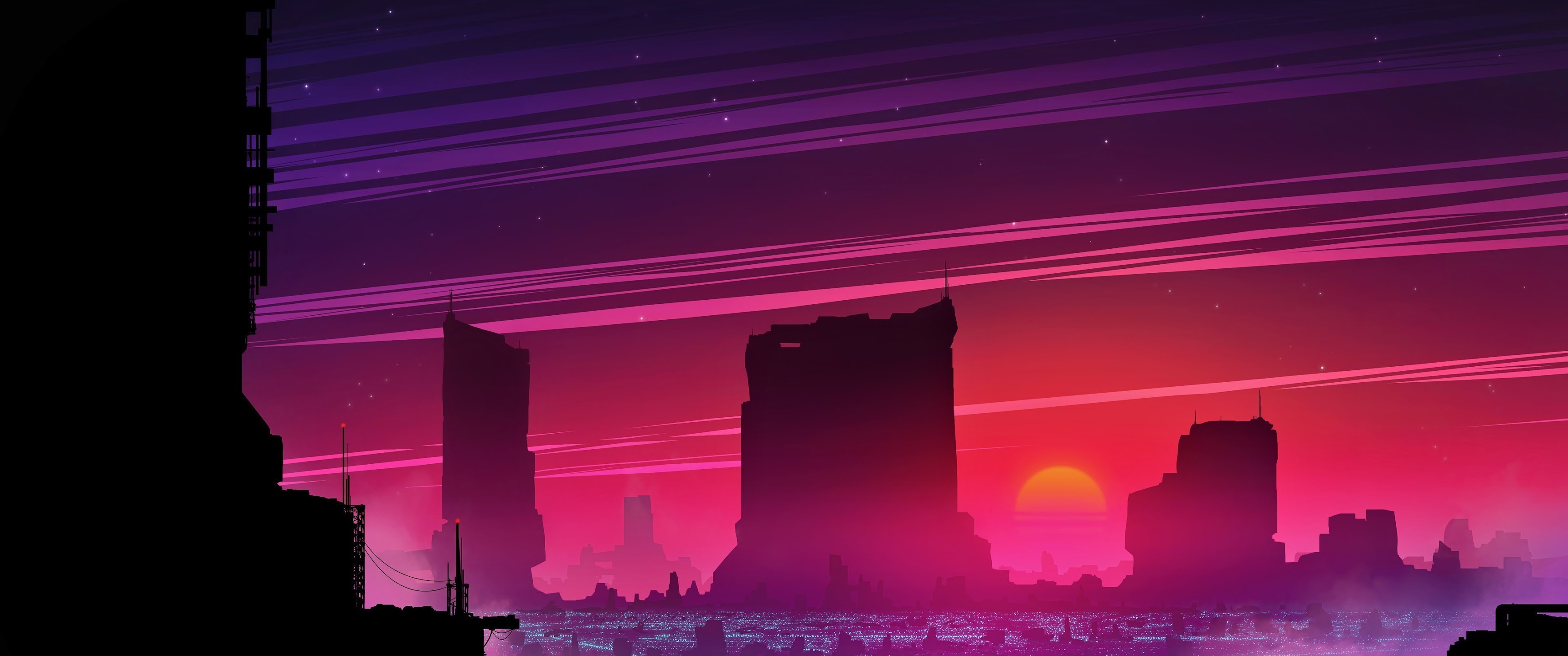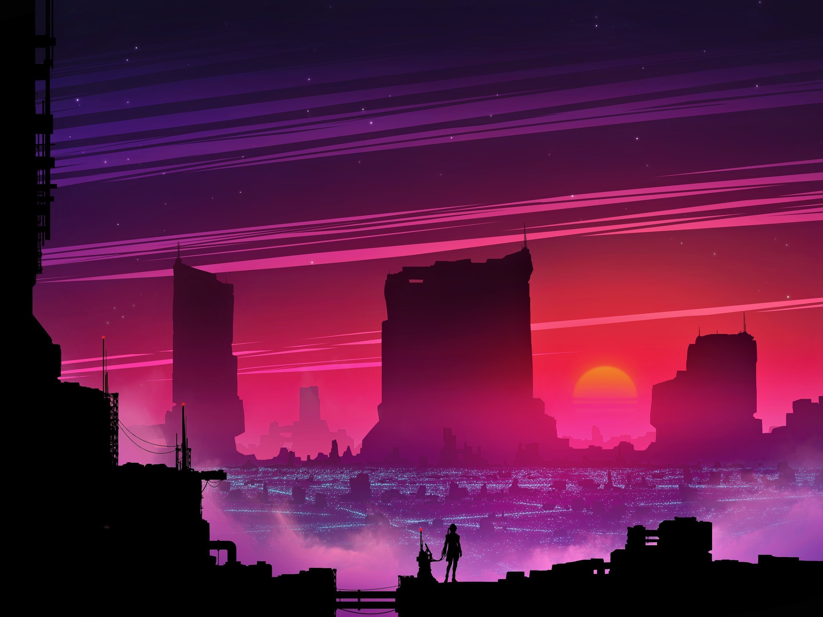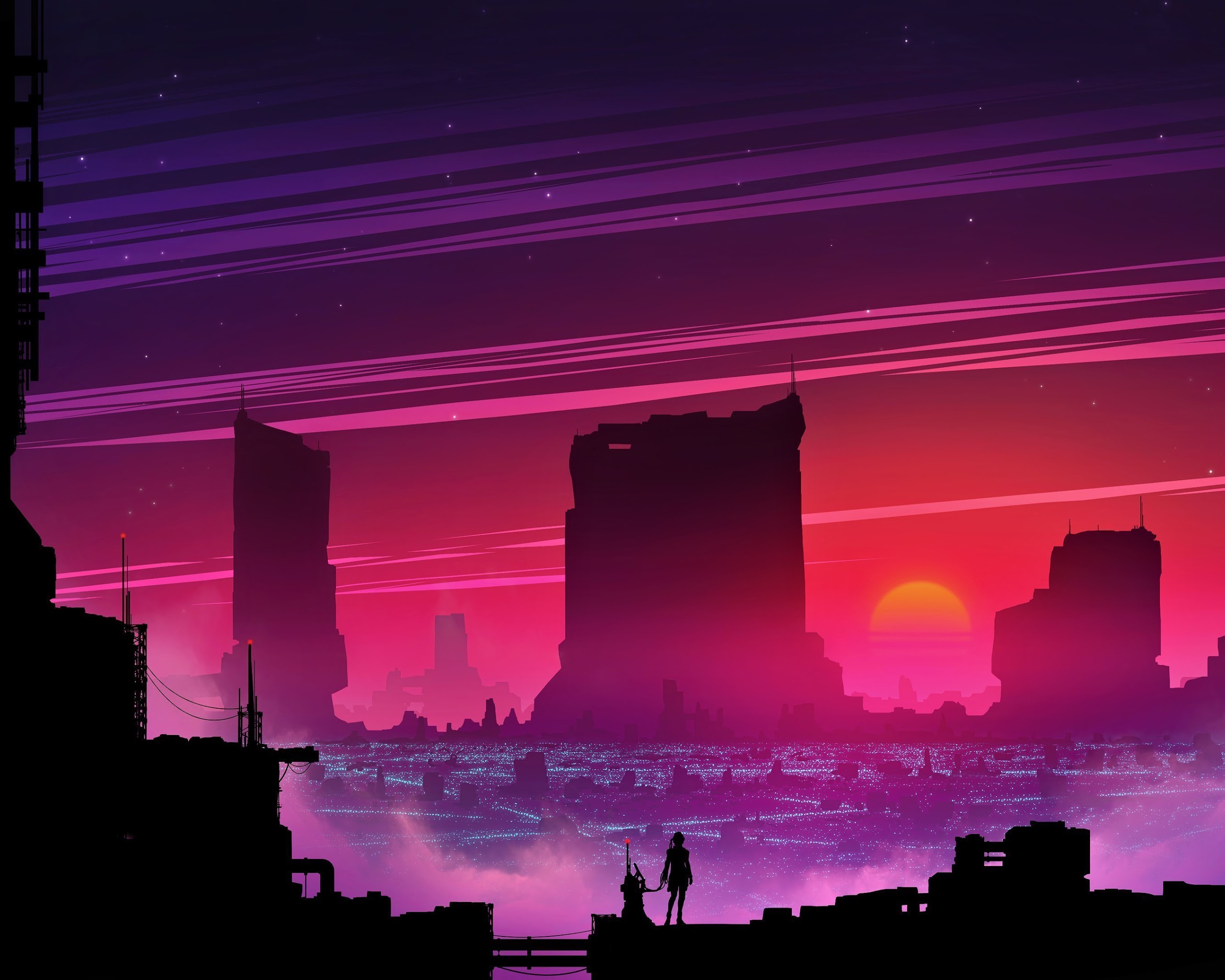 Cityscape, Lights, Cyber, Science Fiction, Digital Art 4K Wallpaper Background with a maximum resolution of 3840x2160 px.