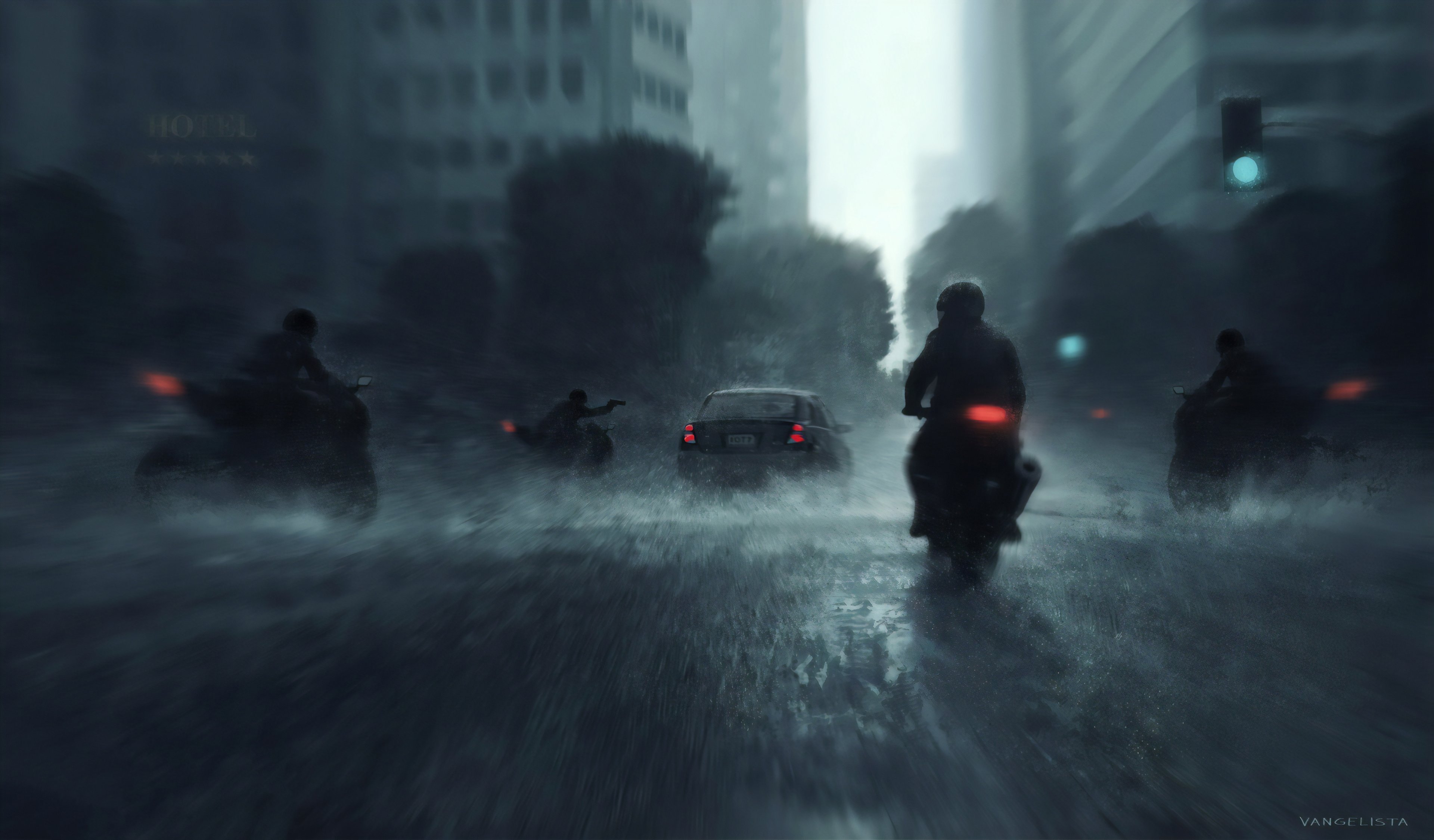 Digital Art, Artwork, Illustration, City, City Lights 4K Wallpaper Background with a maximum resolution of 3840x2250 px.