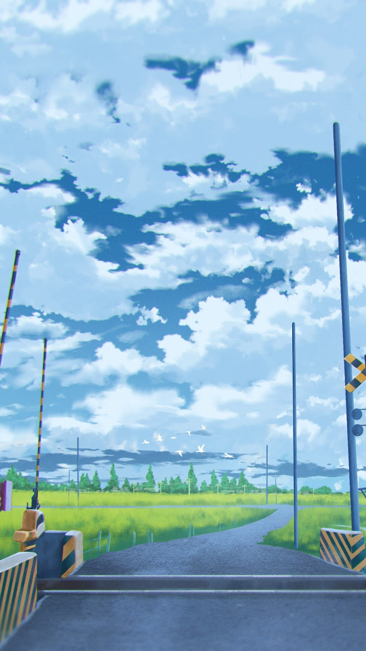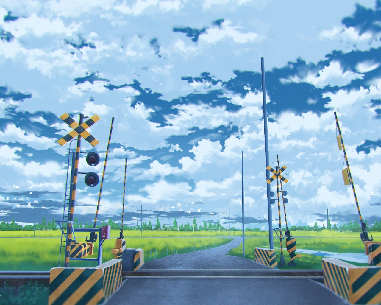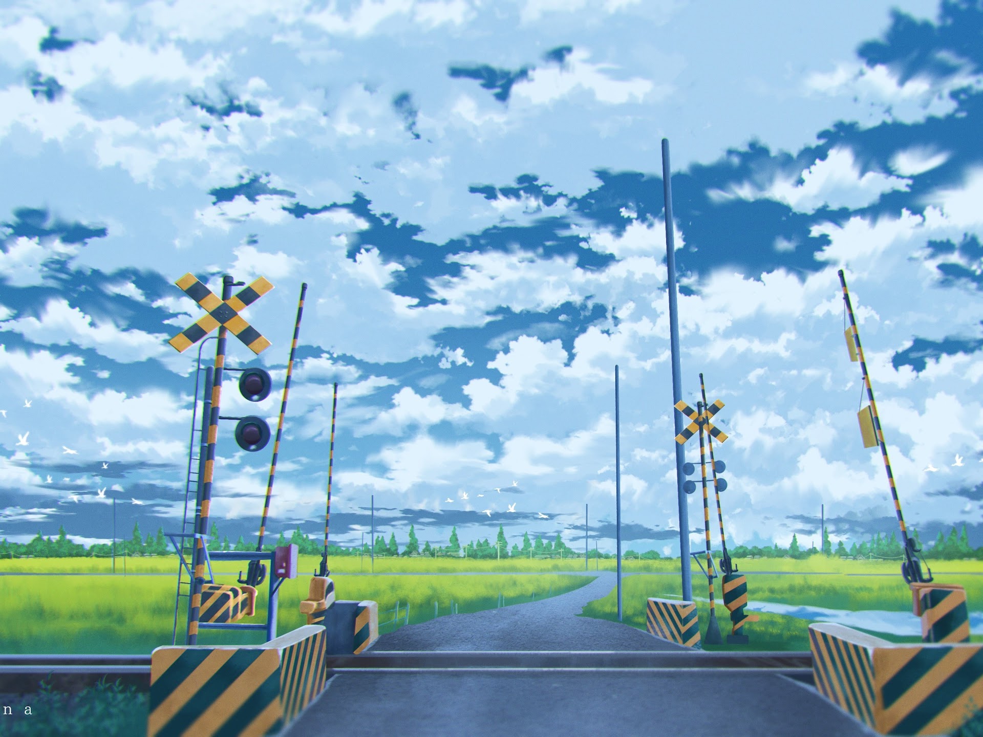 Digital Art, Artwork, Illustration, Clouds, Railway Crossing 4K Wallpaper Background with a maximum resolution of 3840x2168 px.