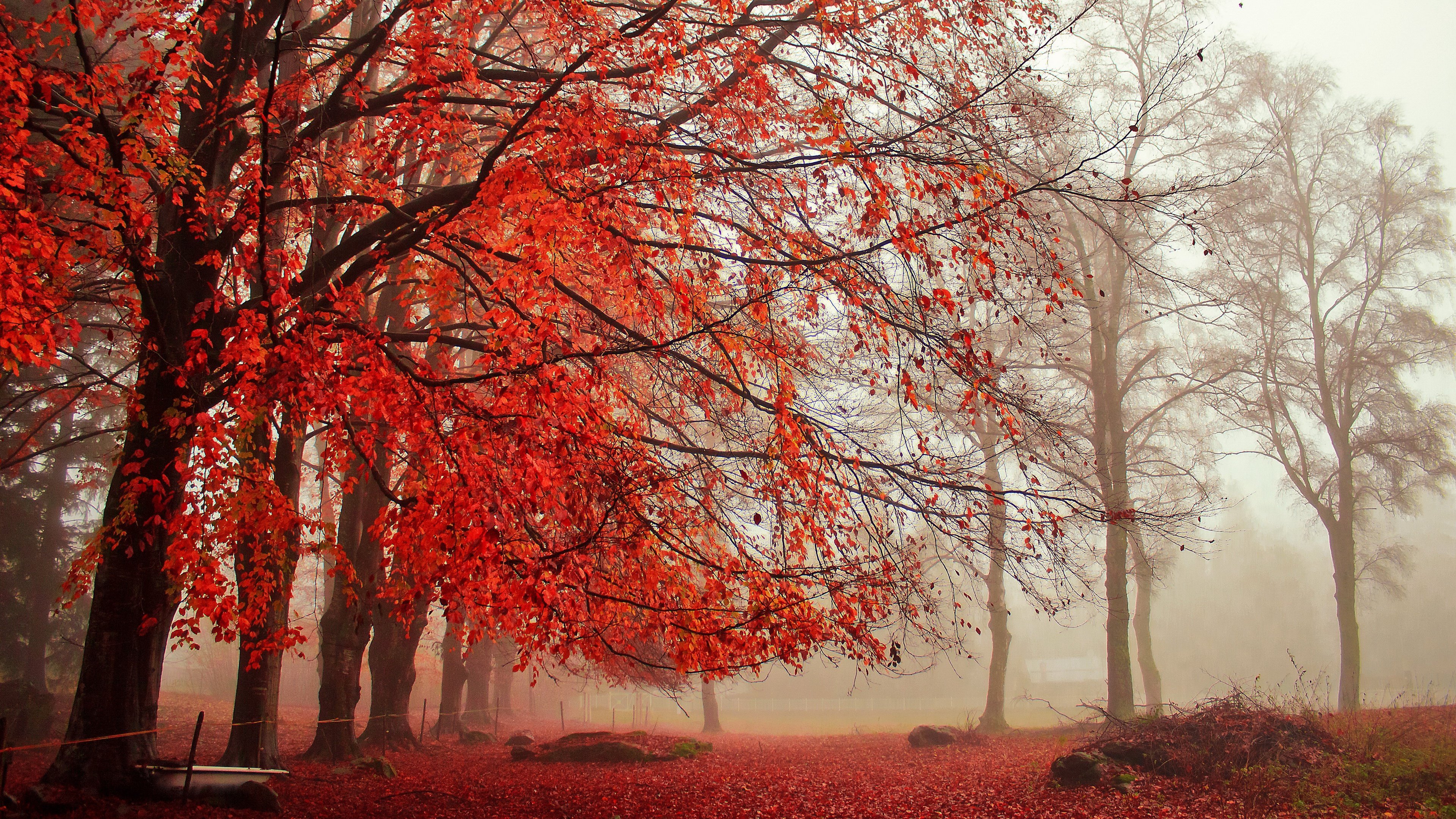 Fall, Outdoors, Trees, Fallen Leaves 4K Wallpaper Background with a maximum resolution of 3840x2160 px.