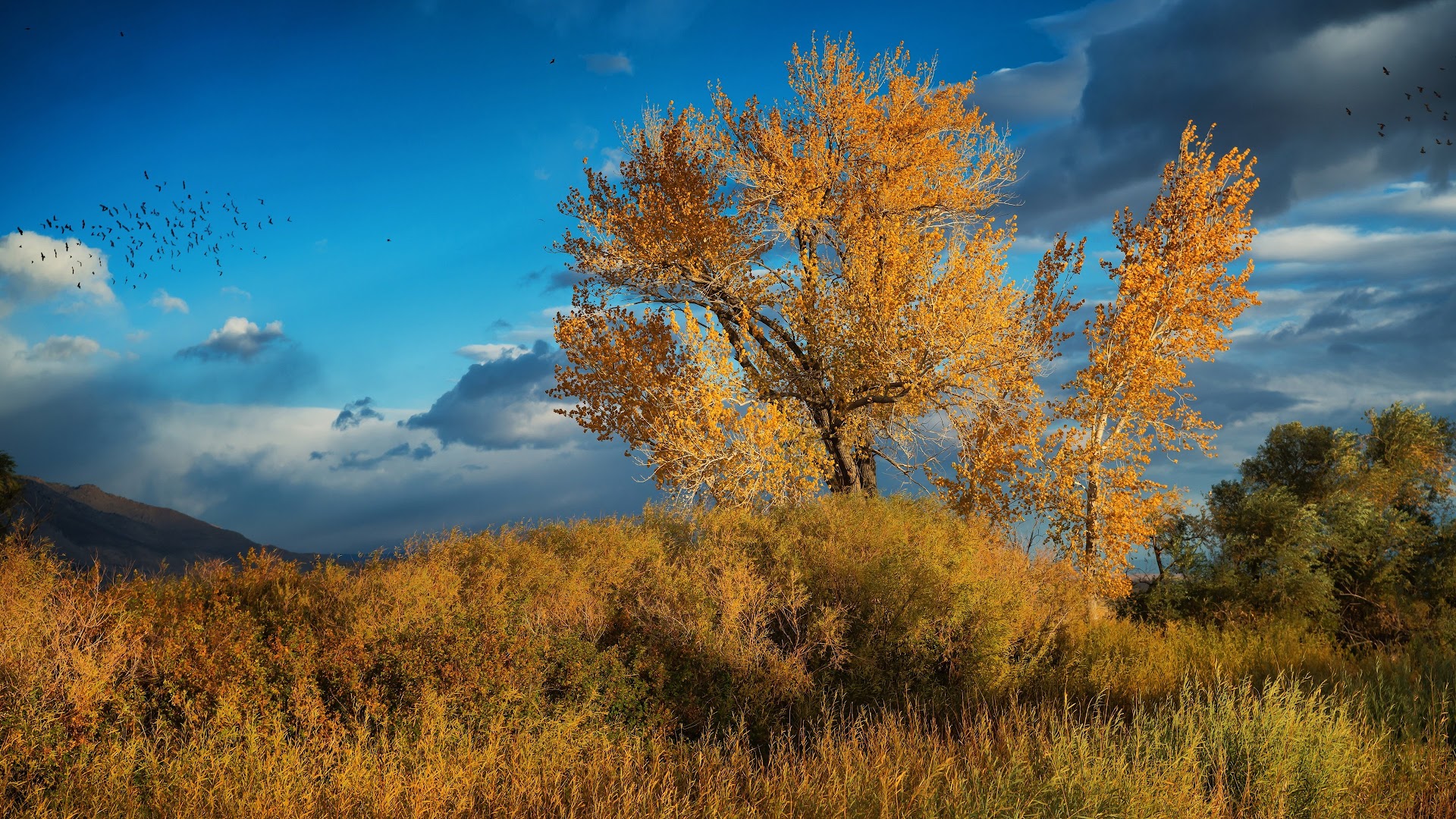 Fall, Plants, Sky, Nature, Shrubs 4K Wallpaper Background with a maximum resolution of 3840x2160 px.