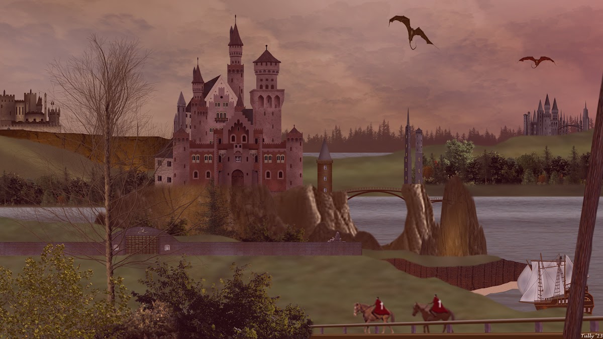 Fantasy Castle, Dragon, Medieval, Digital Art, Castle 4K Wallpaper Background with a maximum resolution of 3840x2160 px.