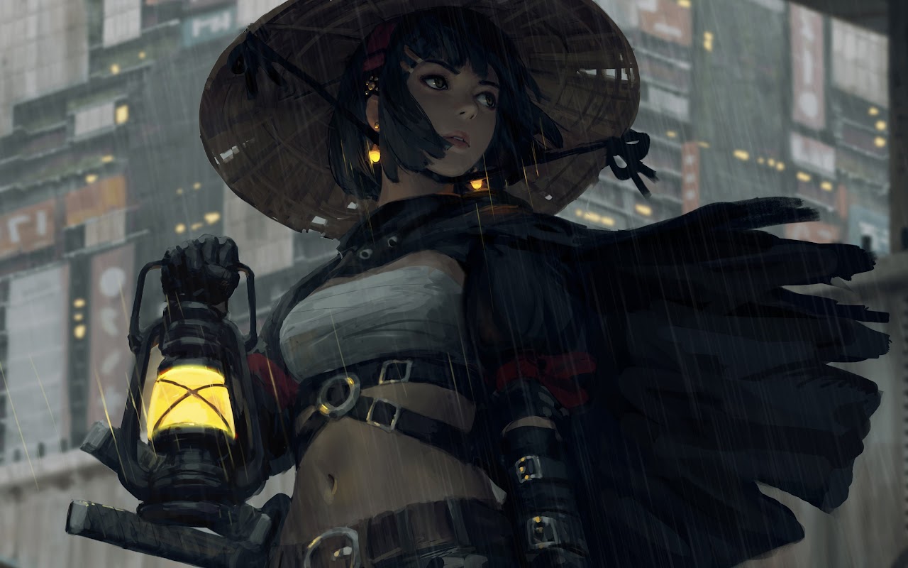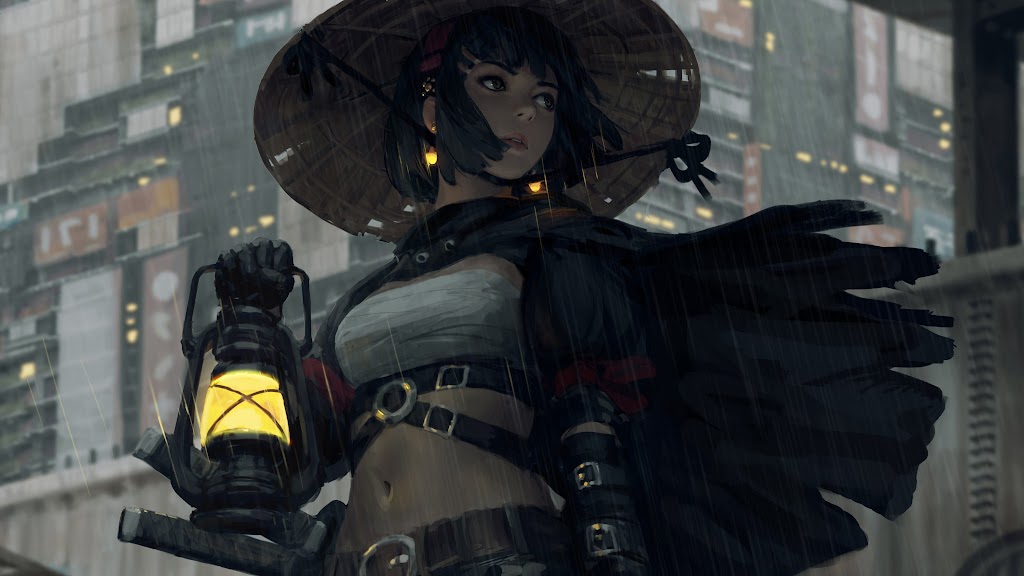 Fantasy Girl, Female Warrior, Women With Hats, Black Hair, Bangs 4K Wallpaper Background with a maximum resolution of 4096x2559 px.