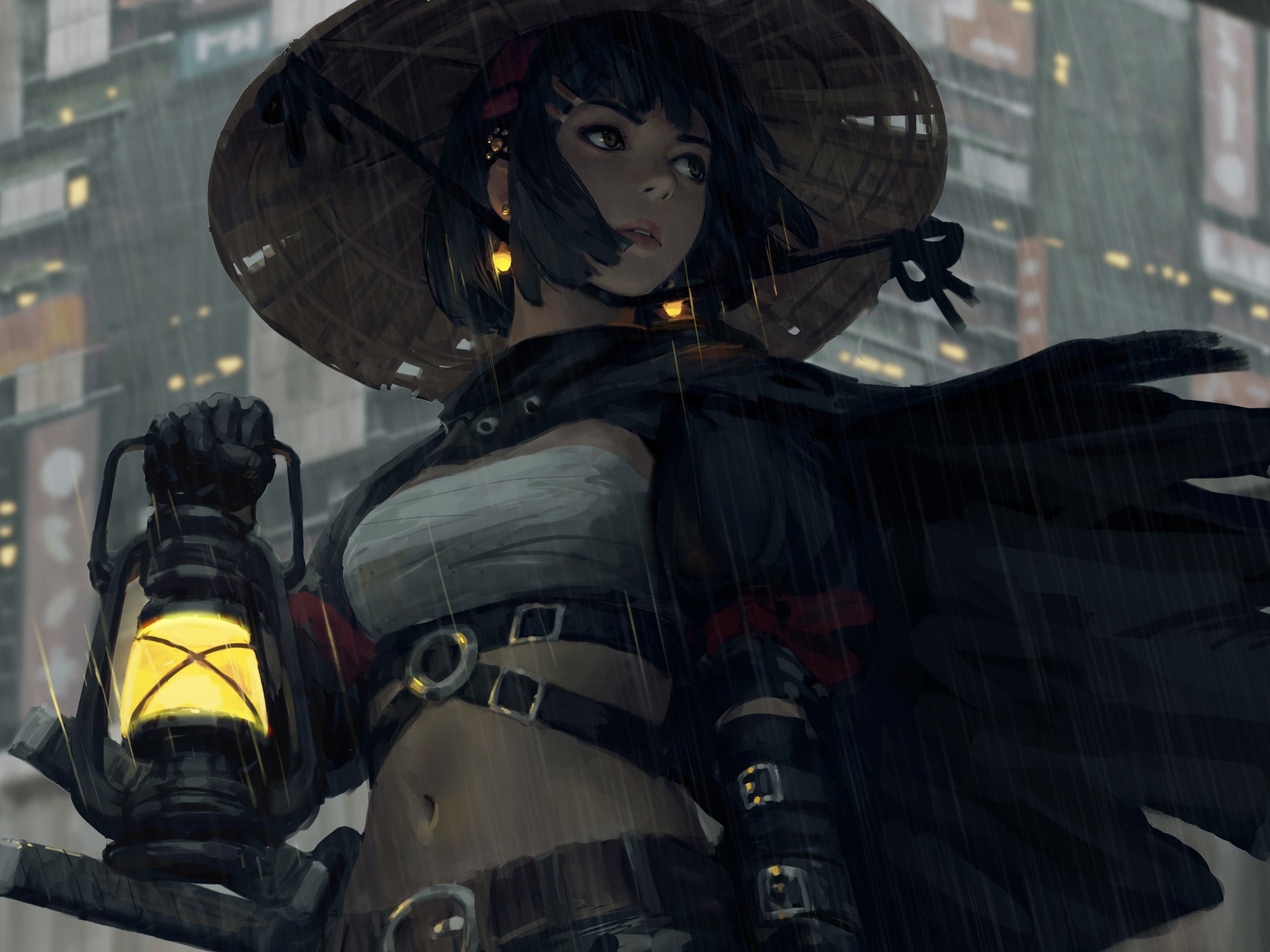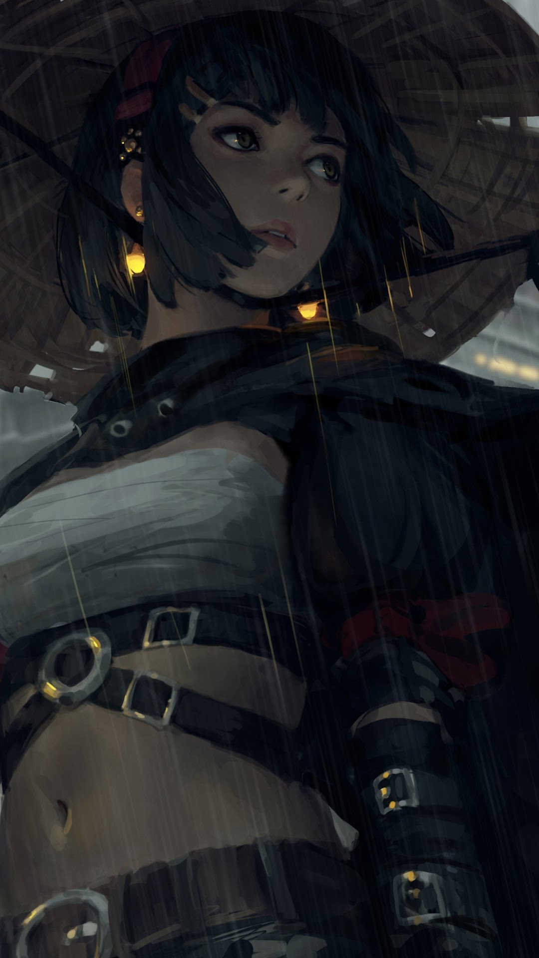Fantasy Girl, Female Warrior, Women With Hats, Black Hair, Bangs 4K Phone Wallpaper
