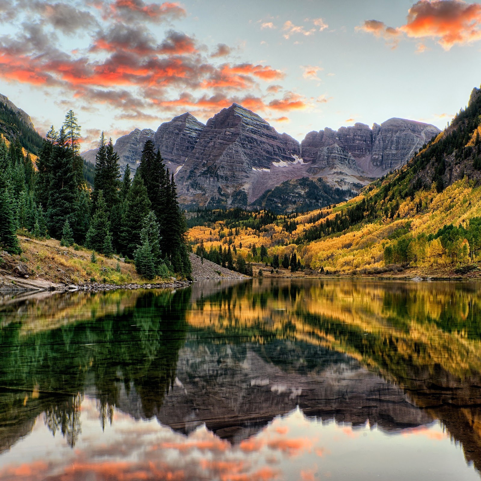Forest, Landscape, Maroon Bells, Colorado, Mountains 5K Desktop Wallpaper