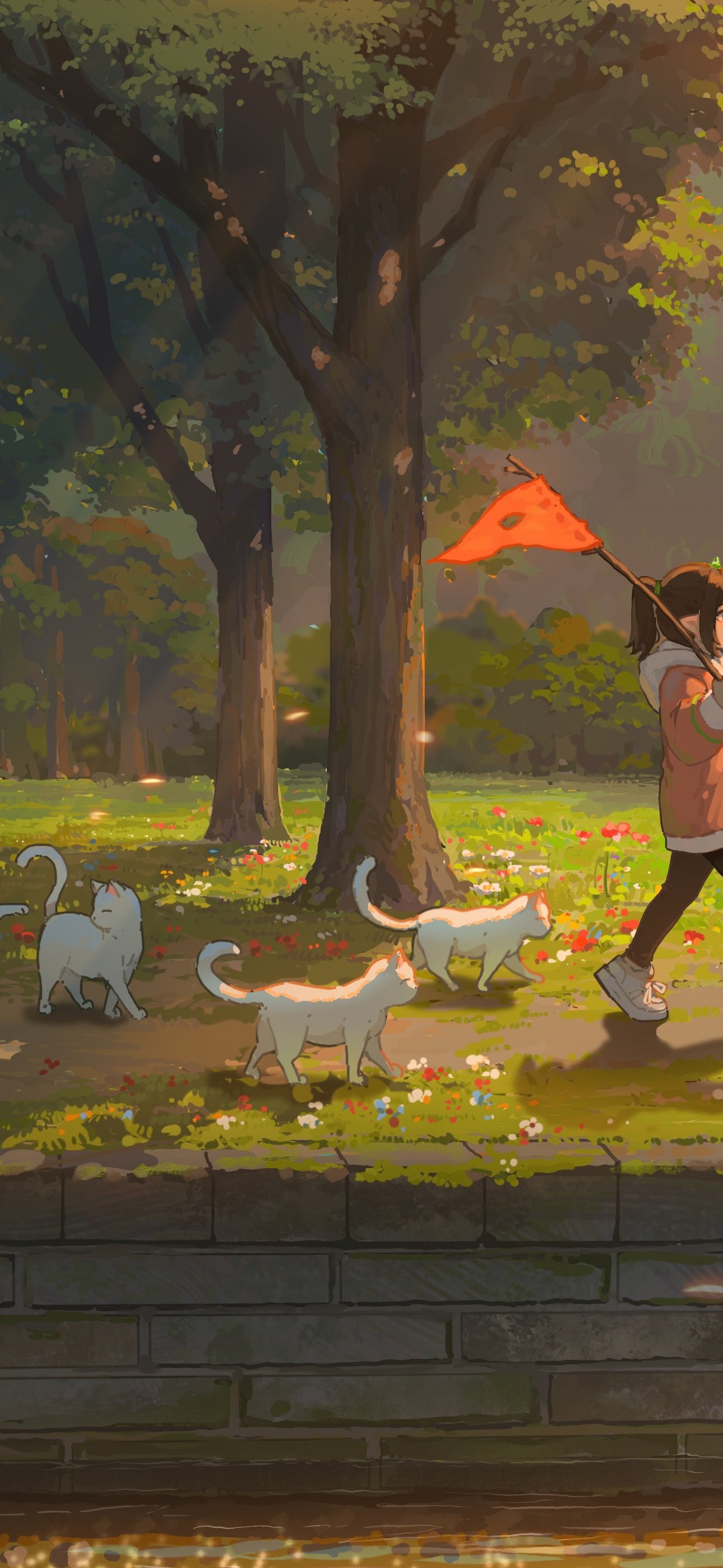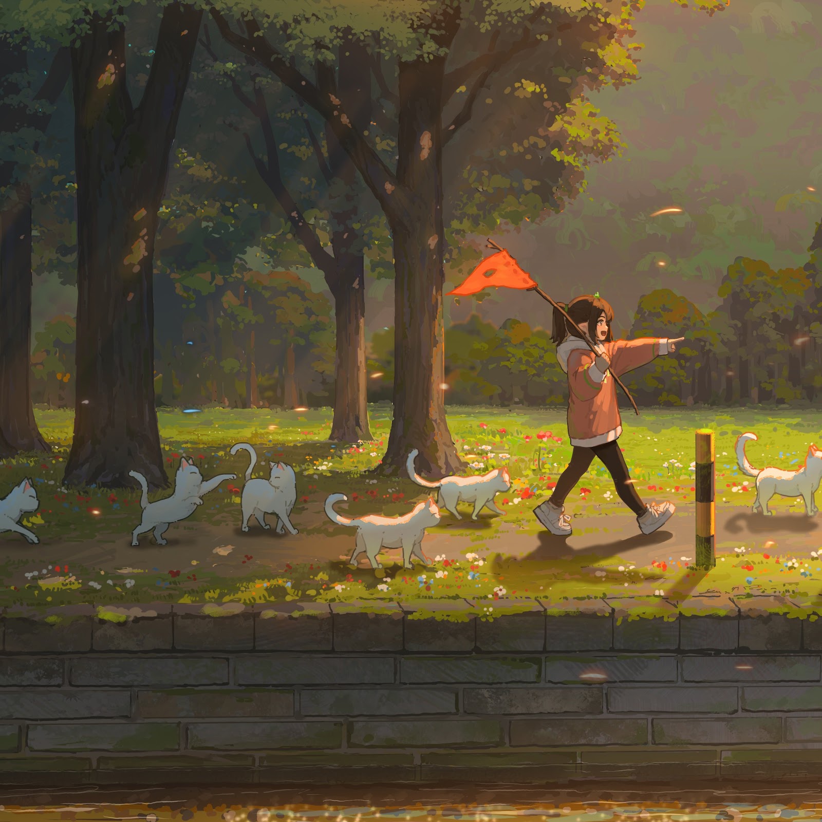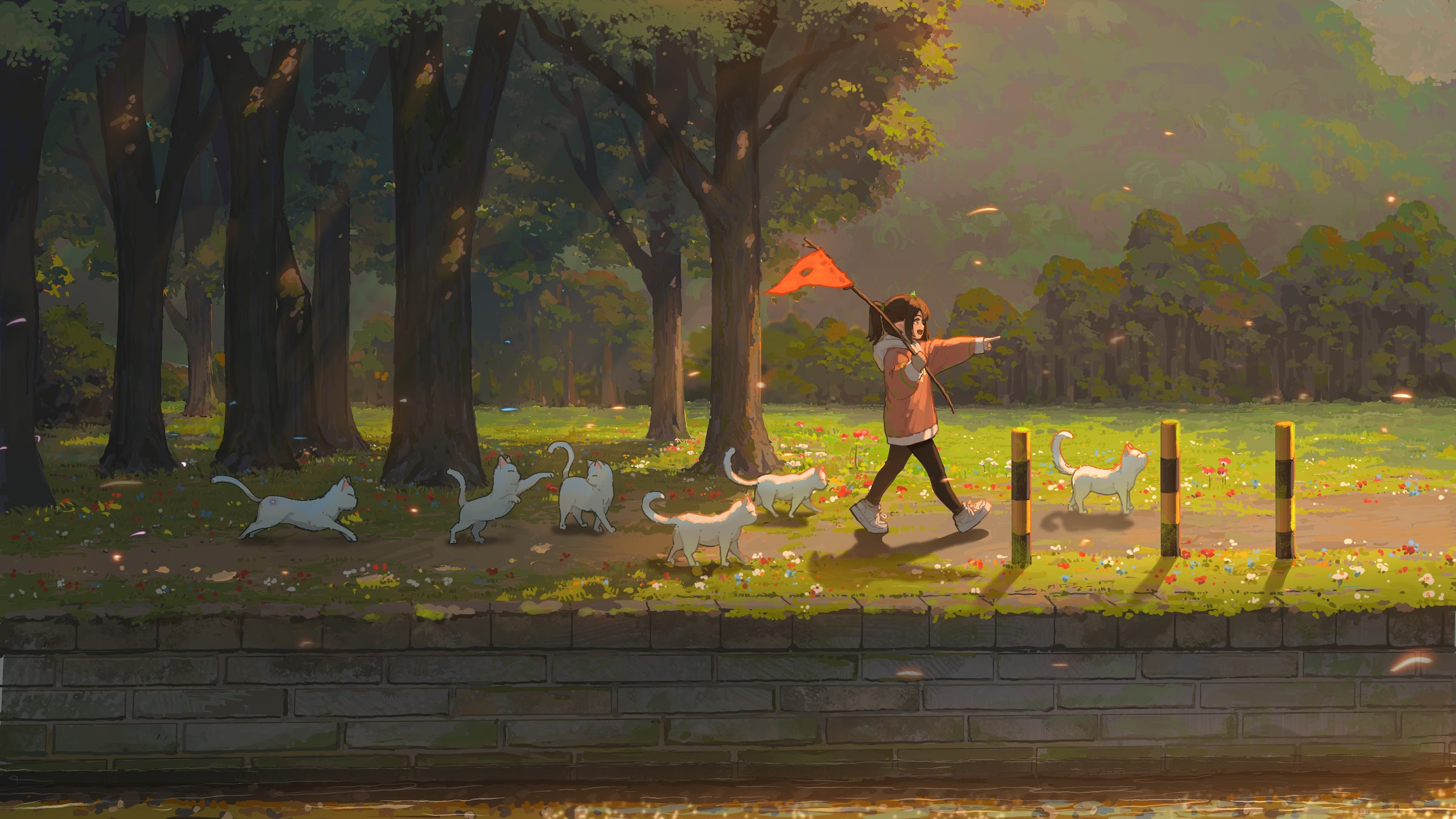 Hua Ming Wink, Original Characters, Illustration, Anime Girls, Cats 5K Wallpaper Background with a maximum resolution of 5263x2961 px.