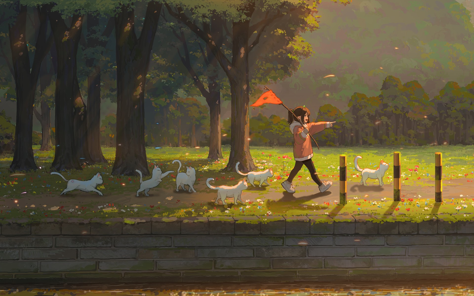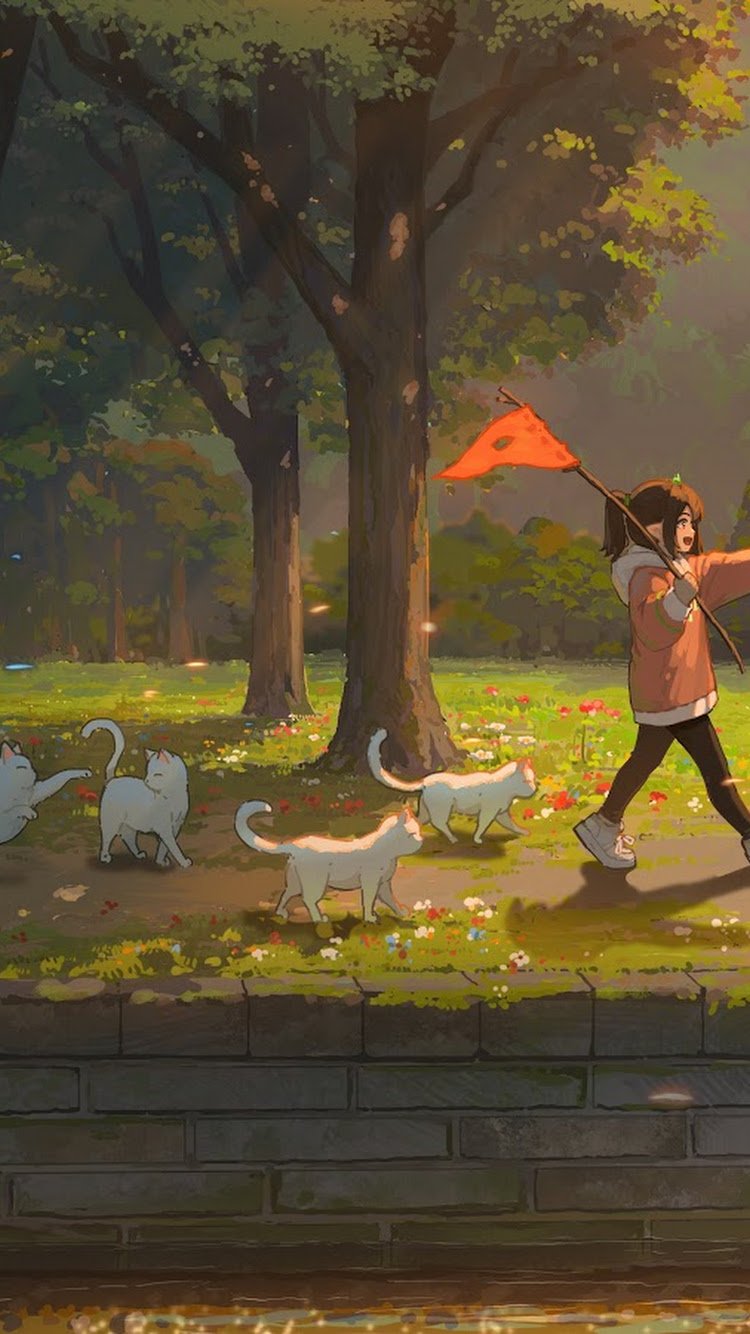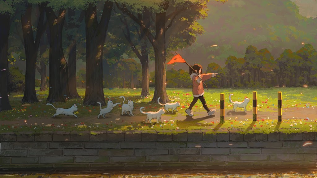 Hua Ming Wink, Original Characters, Illustration, Anime Girls, Cats 5K Desktop Wallpaper