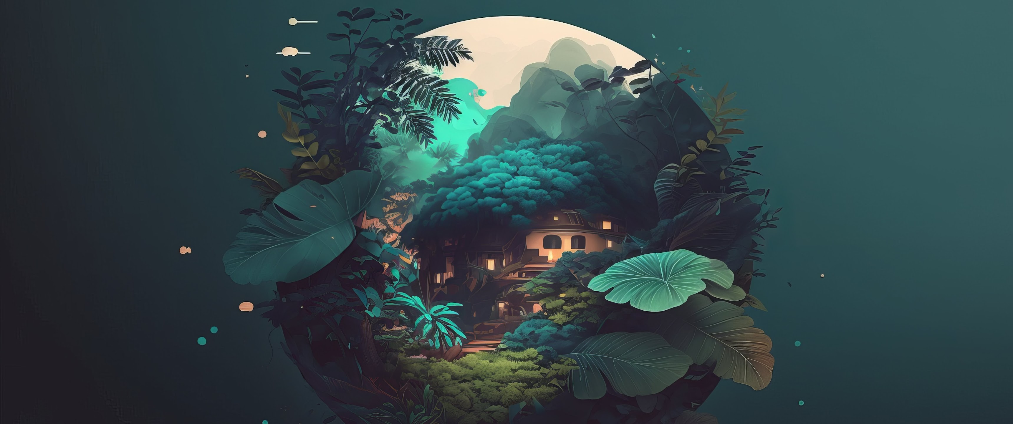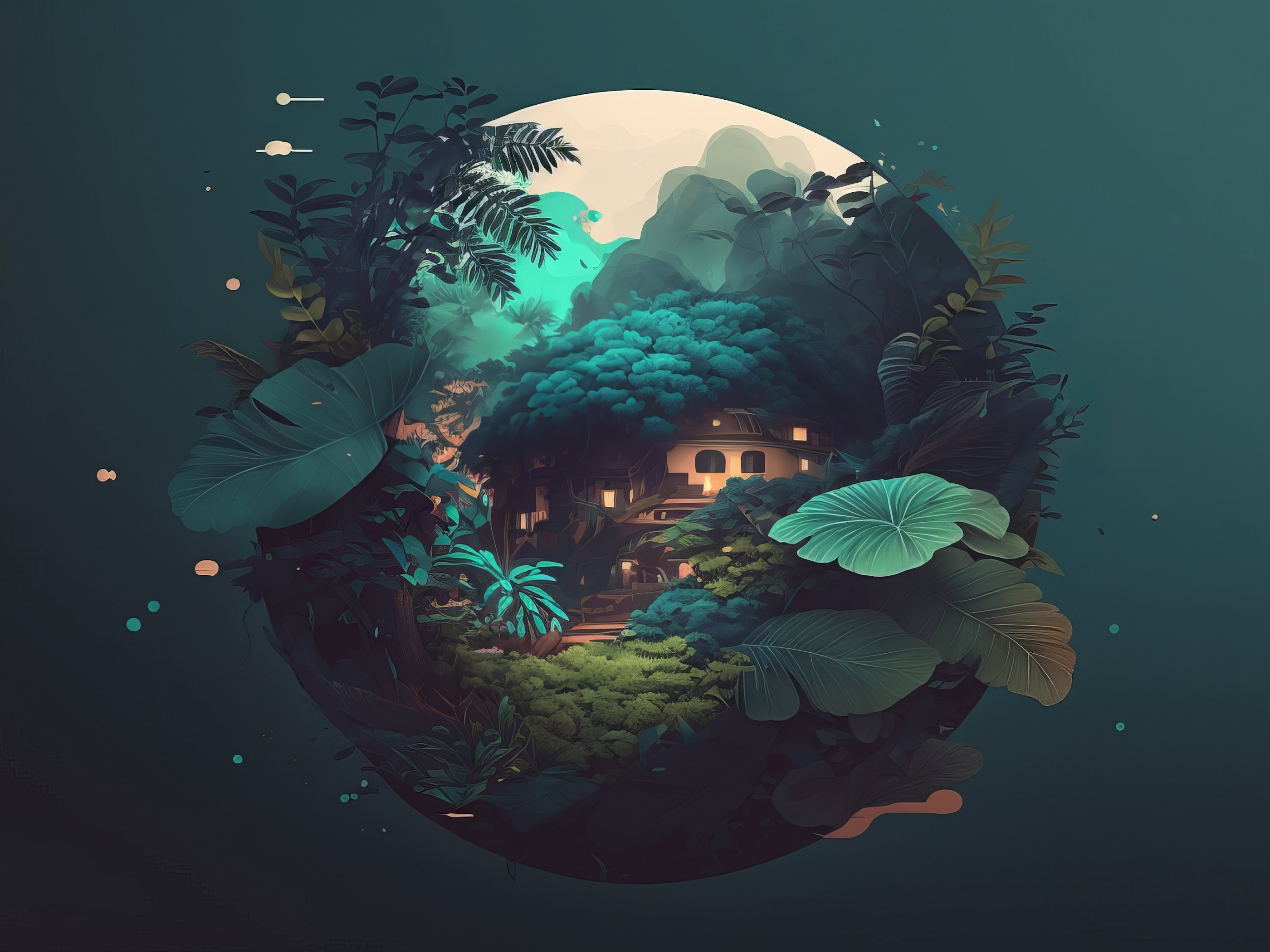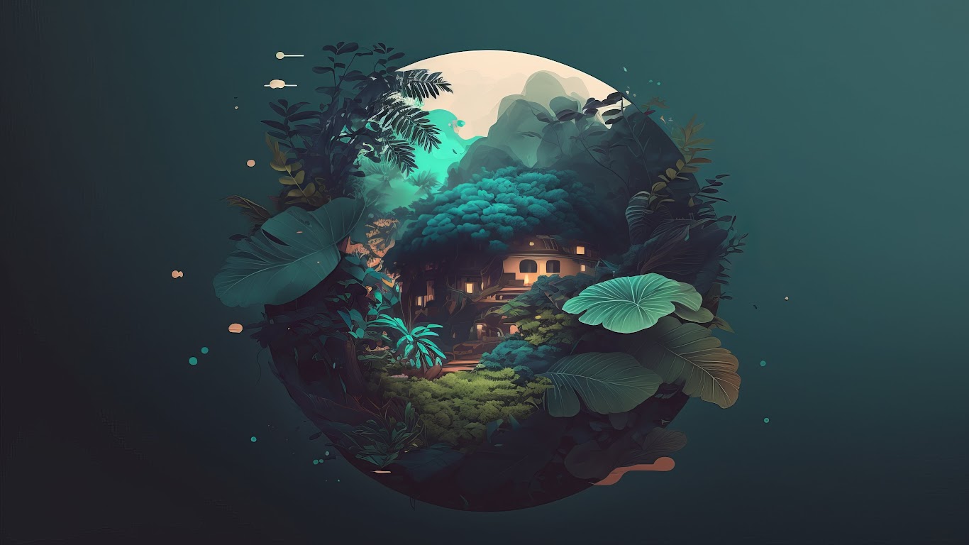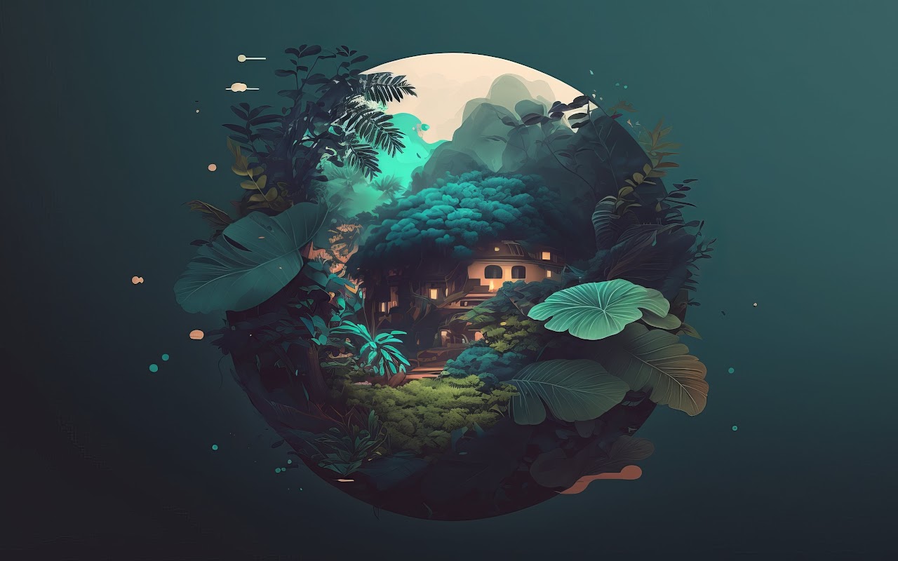 Illustration, Simple Background, Minimalism, Leaves, Orb 4K Wallpaper Background with a maximum resolution of 4579x2616 px.